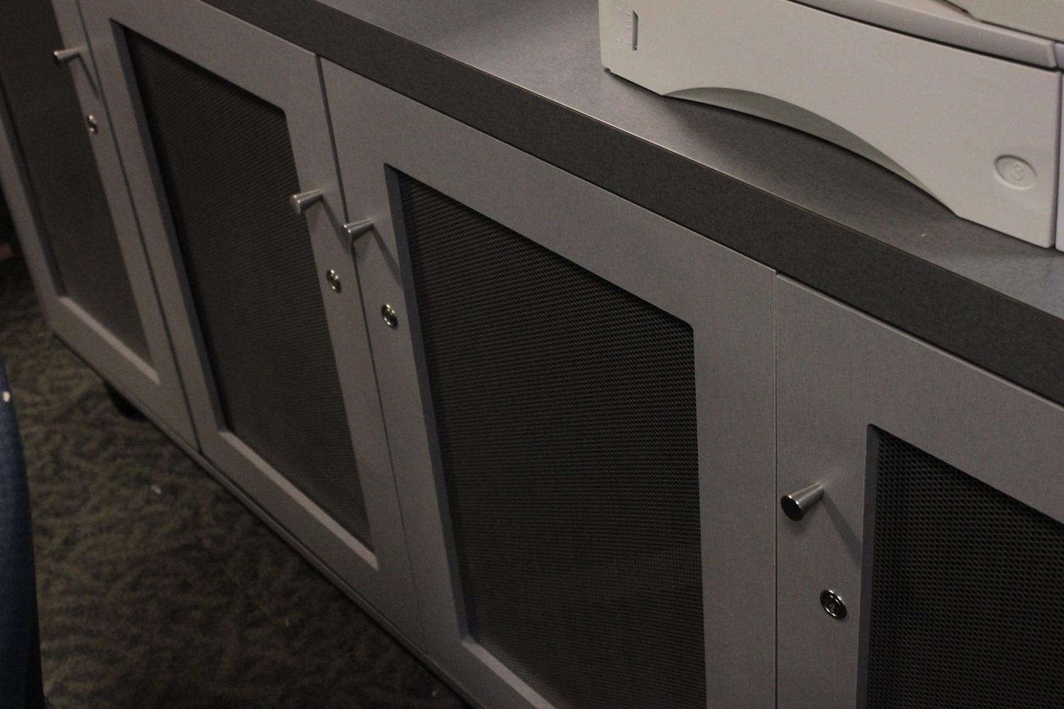 GREY CUSTOM MADE MOBILE BOARDROOM/UV STAND