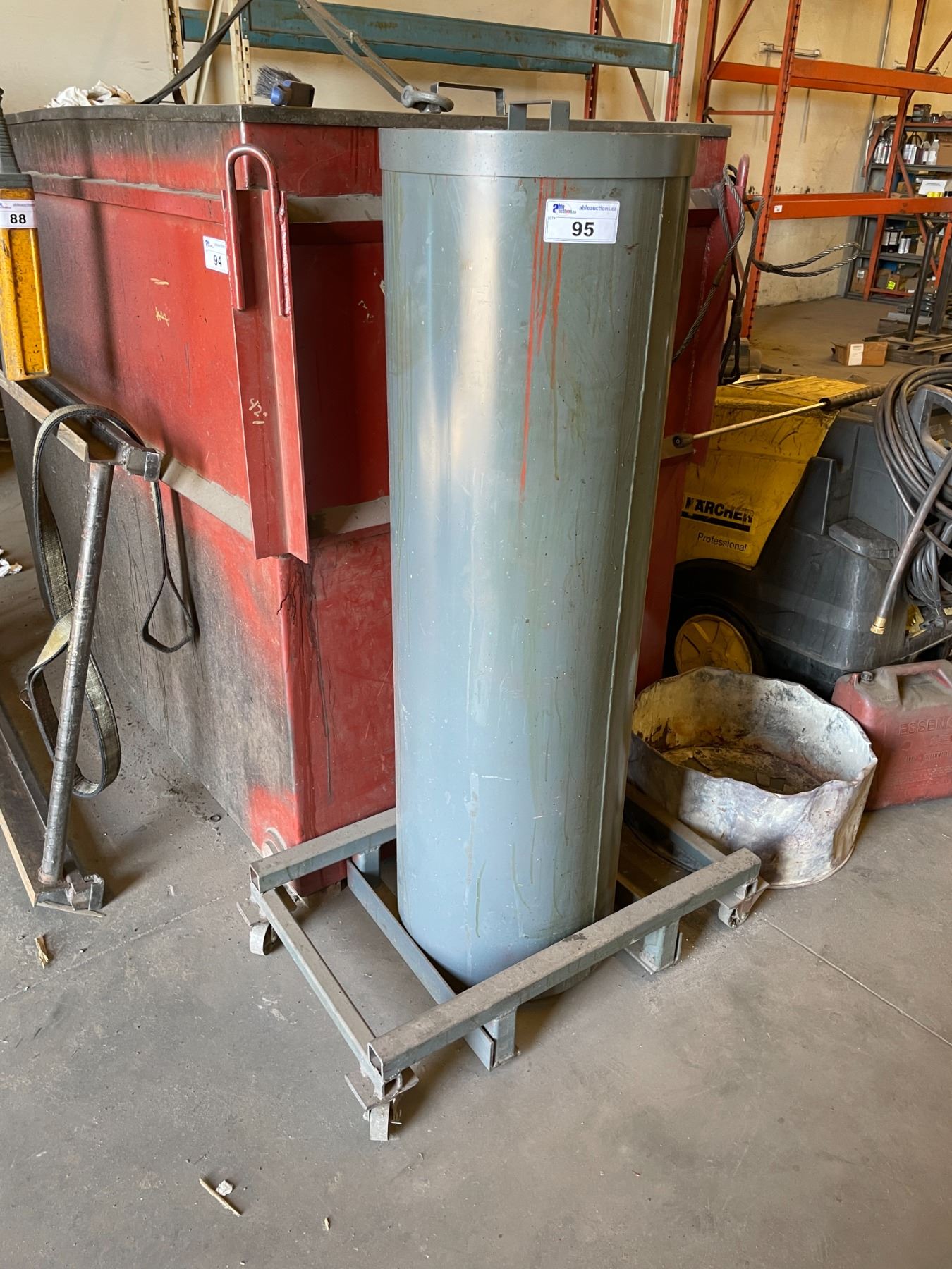 GREY CYLINDER MOBILE STORAGE BIN 18'' ROUND X 61'' H WITH CONTENTS
