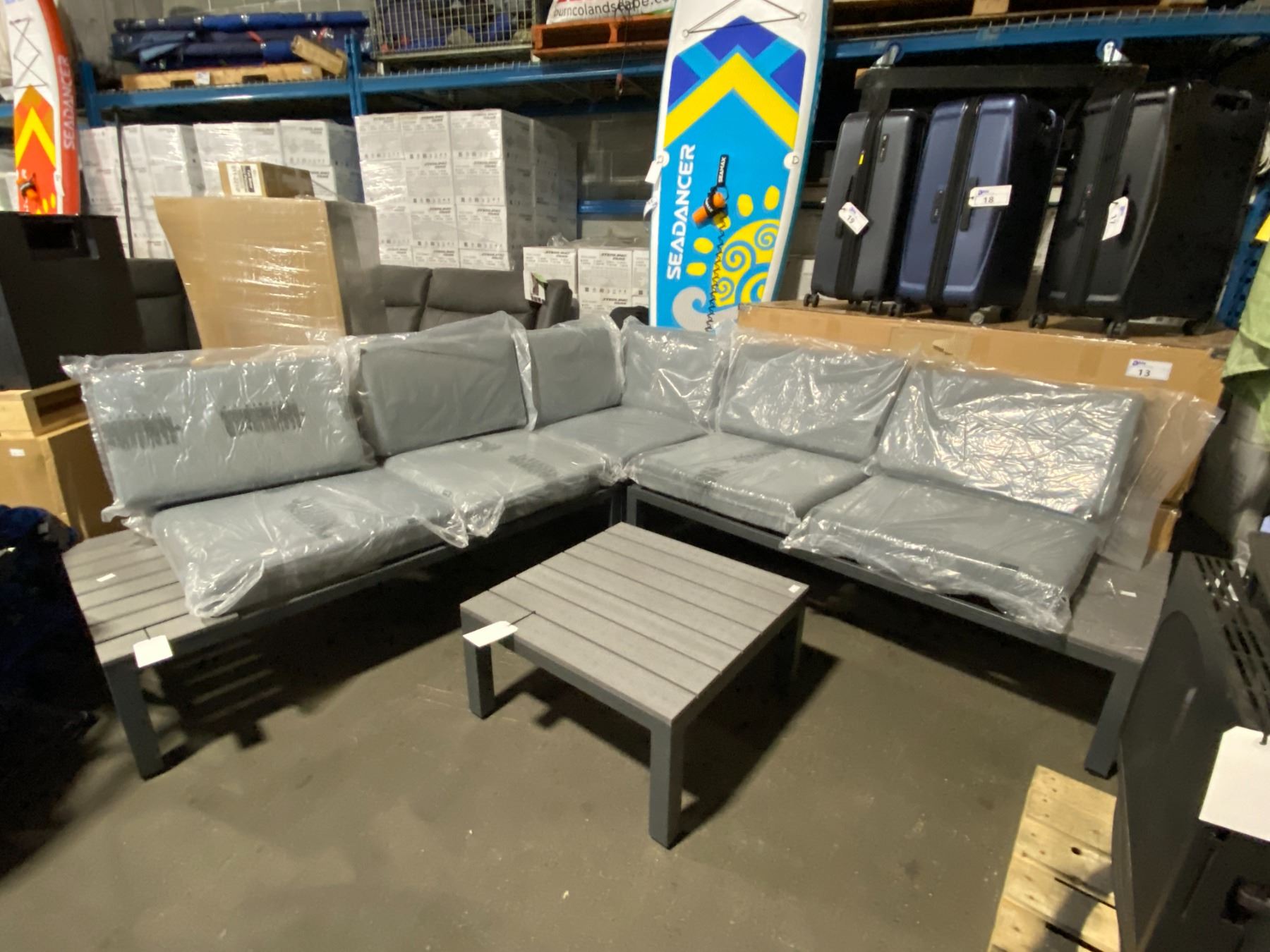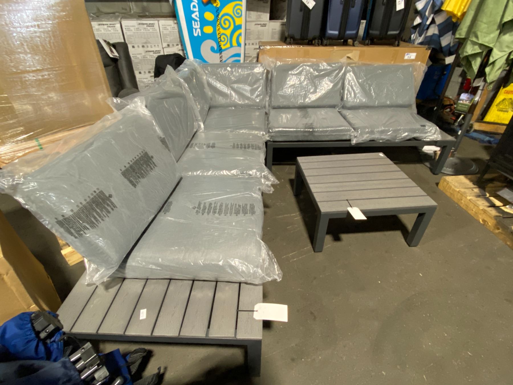 GREY EVA VOGUE COLLECTION OUTDOOR MODULAR SECTIONAL PATIO SET WITH TABLE