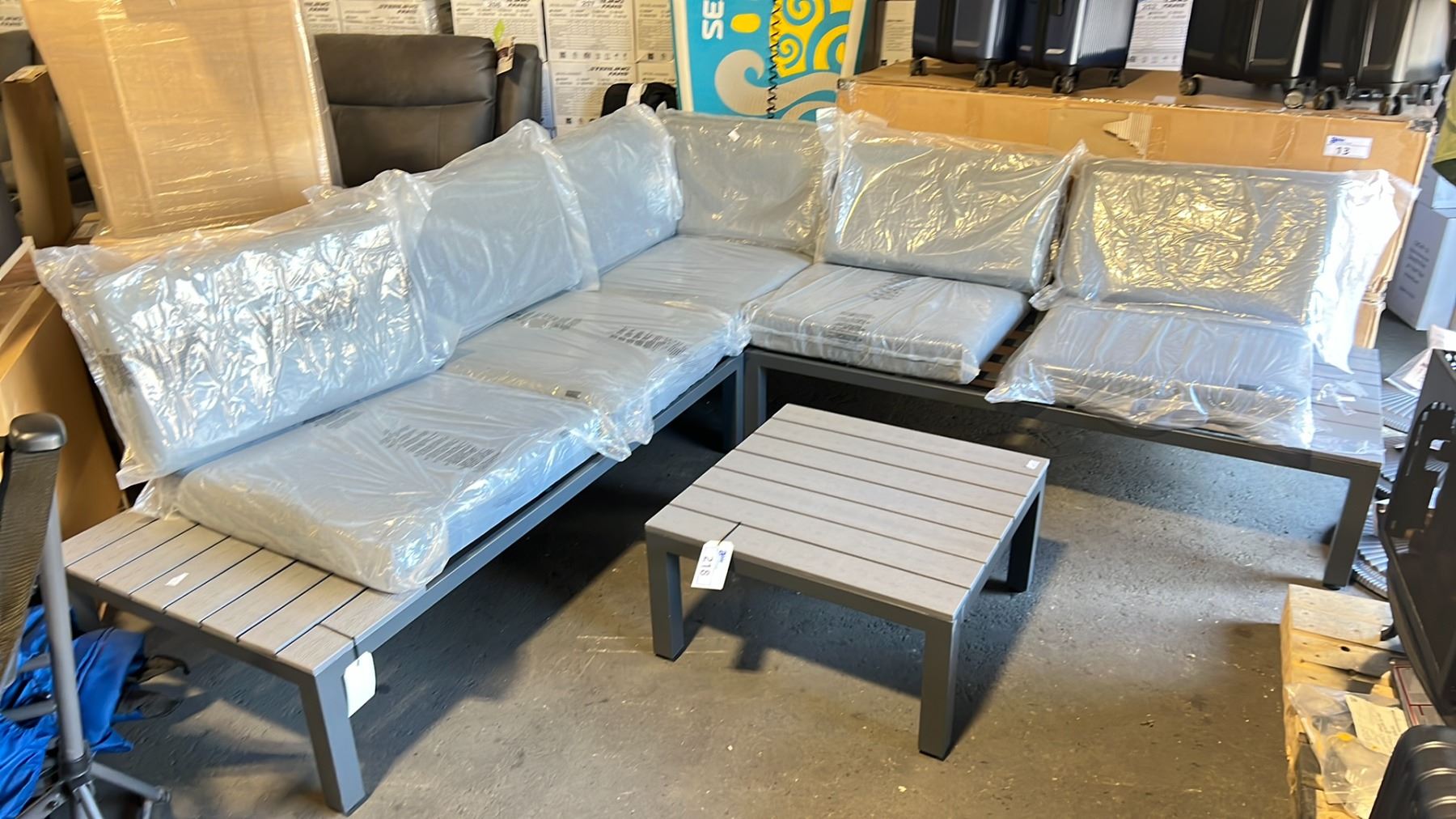 GREY EVA VOGUE COLLECTION OUTDOOR MODULAR SECTIONAL PATIO SET WITH TABLE *DISPLAY ONLY, NOT IN BOX*