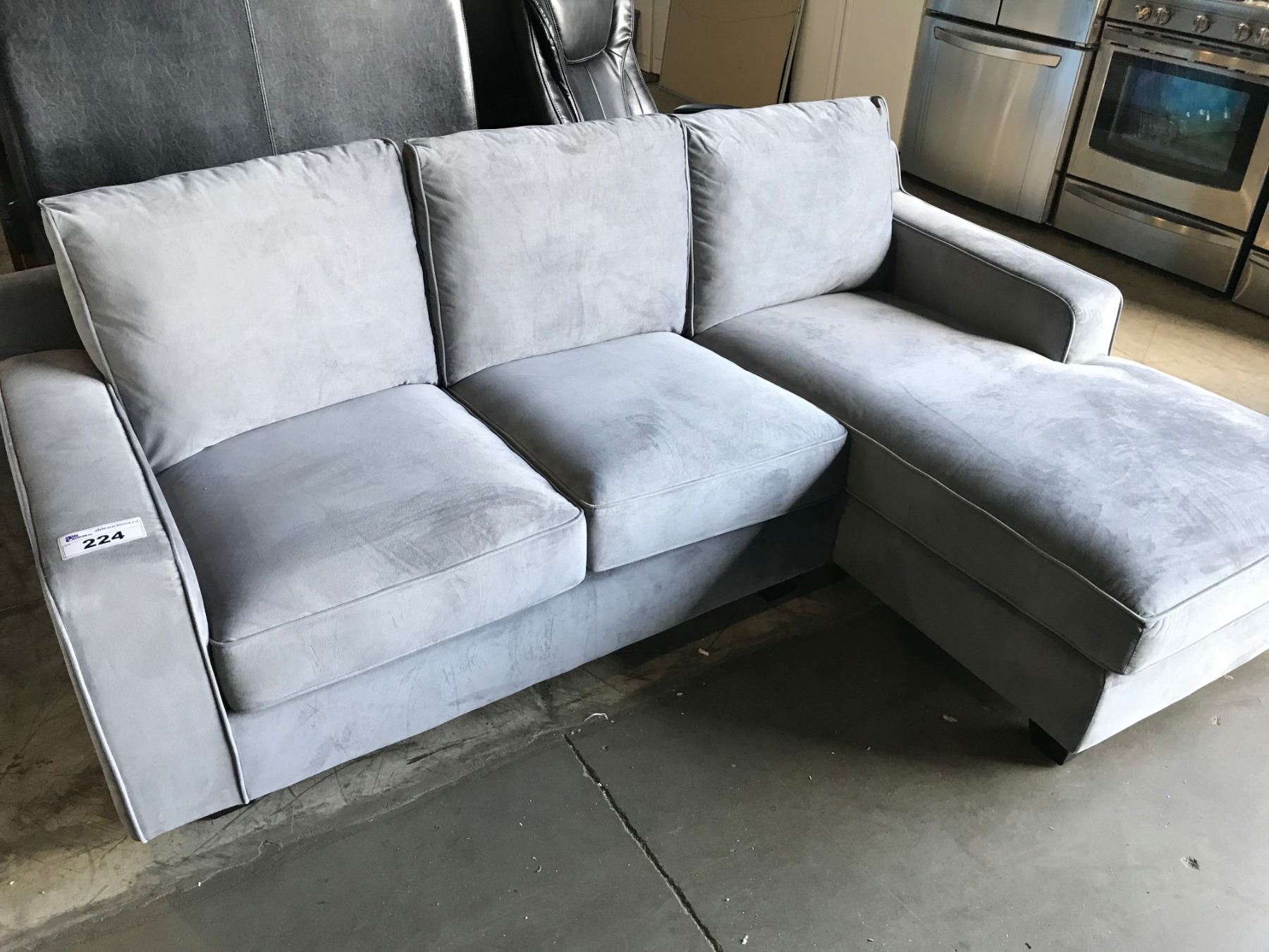 GREY FABRIC 3 SEAT SOFA WITH CHAISE LOUNGE