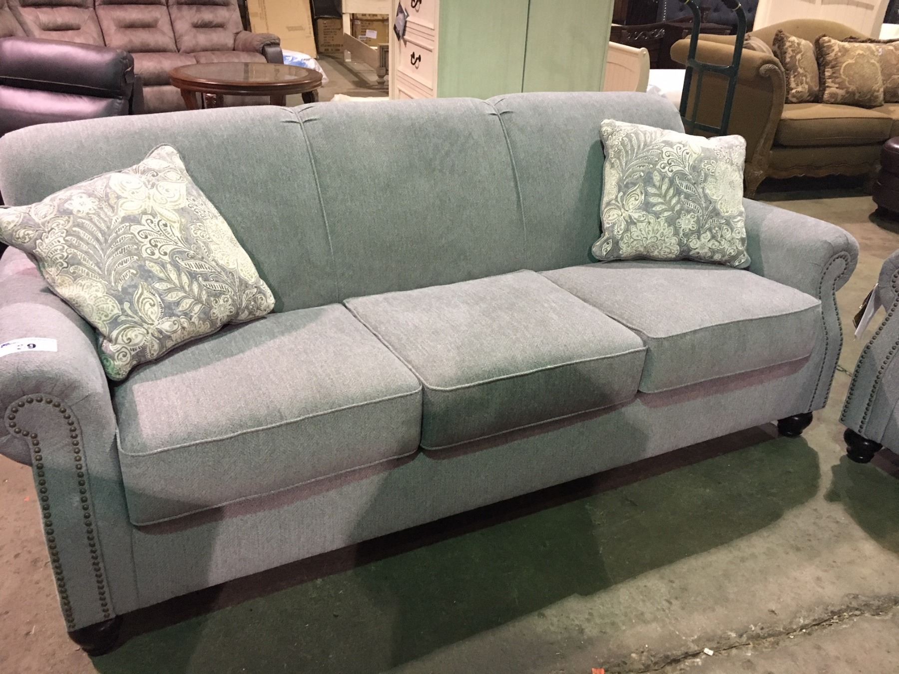 GREY FABRIC STUDDED FRONT 3 SEATER SOFA AND LOVESEAT SET