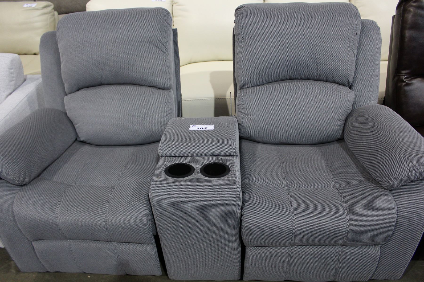 GREY FABRIC TWO SEAT RECLINING LOVESEAT (AS IS)