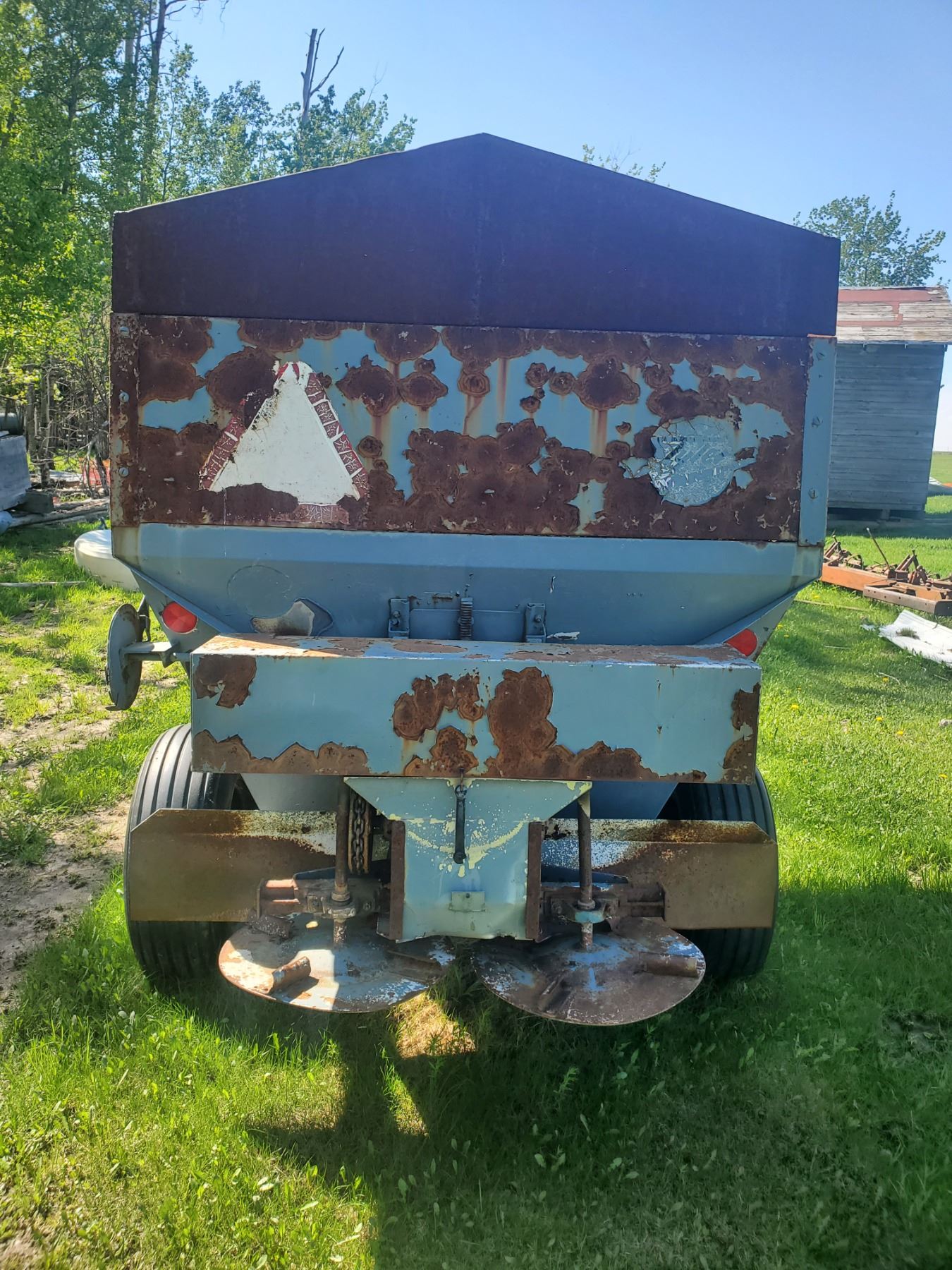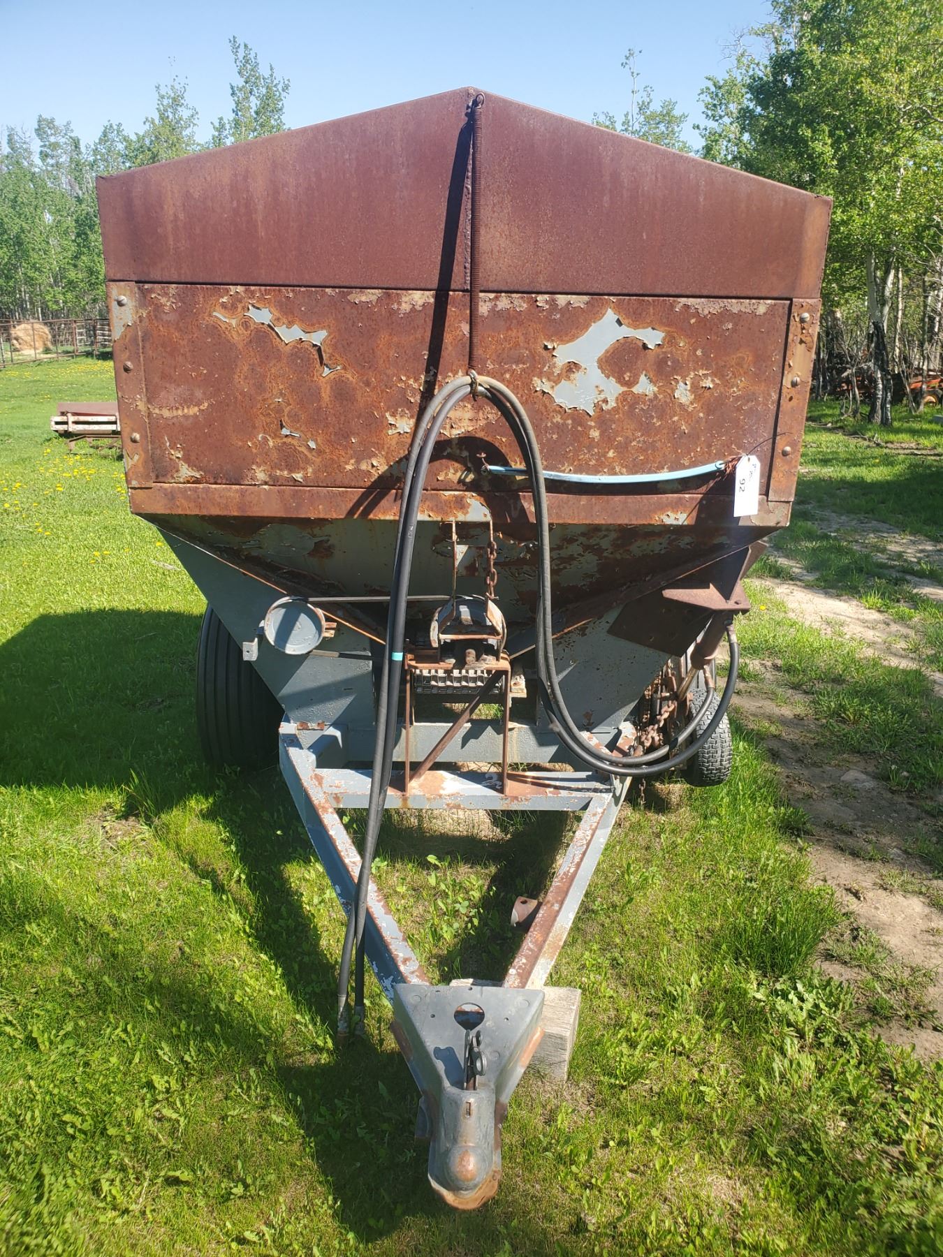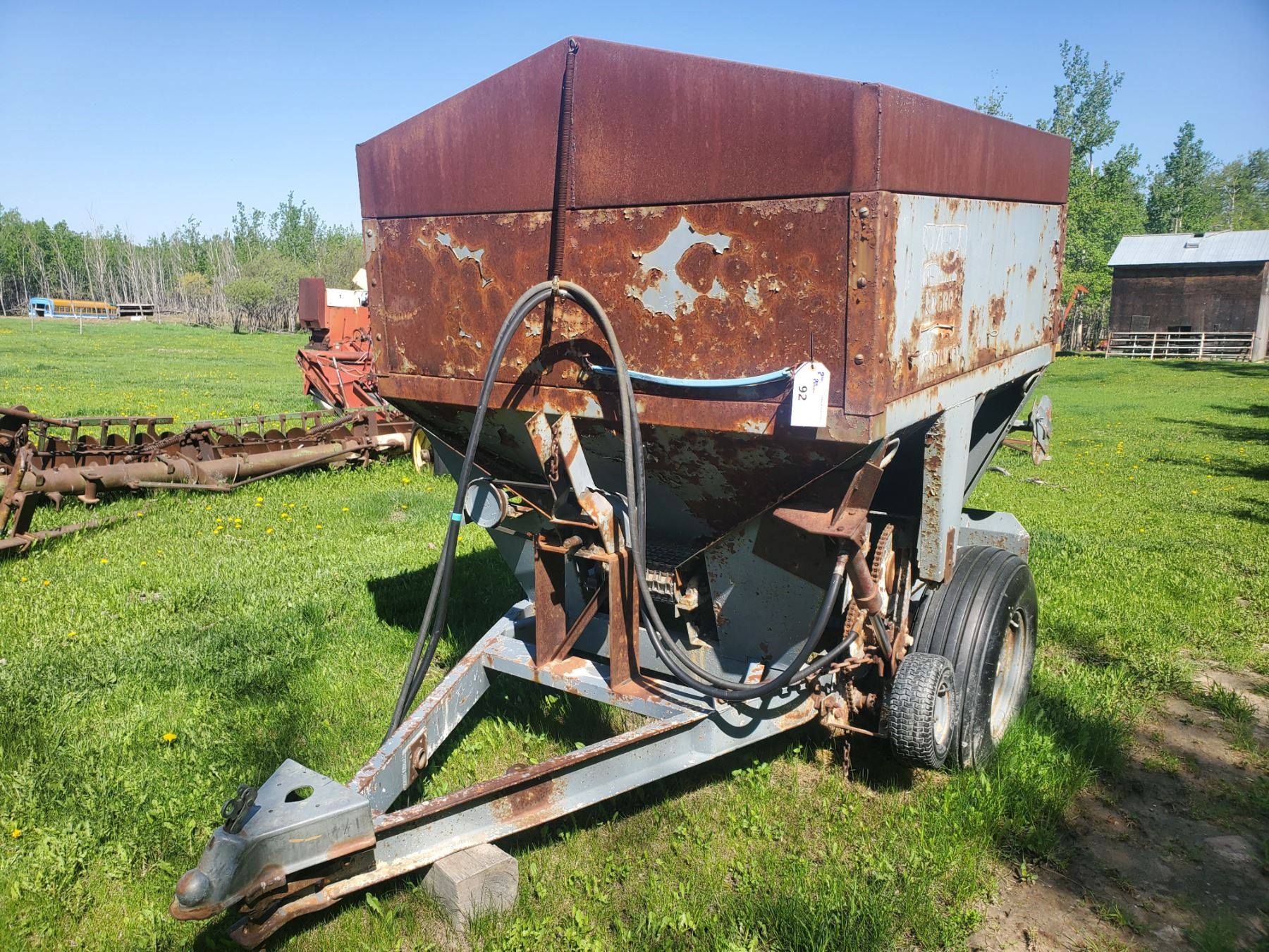GREY FERTILIZER TRAILER 66"X64" BOX, WORKING ORDER UNKNOWN, *PARTS ONLY* *NO REGISTRATION*, MAY OR MAY NOT BE MISSING PARTS *REQUIRES PROPER TRUCKS AND EQUIPMENT FOR REMOVAL*