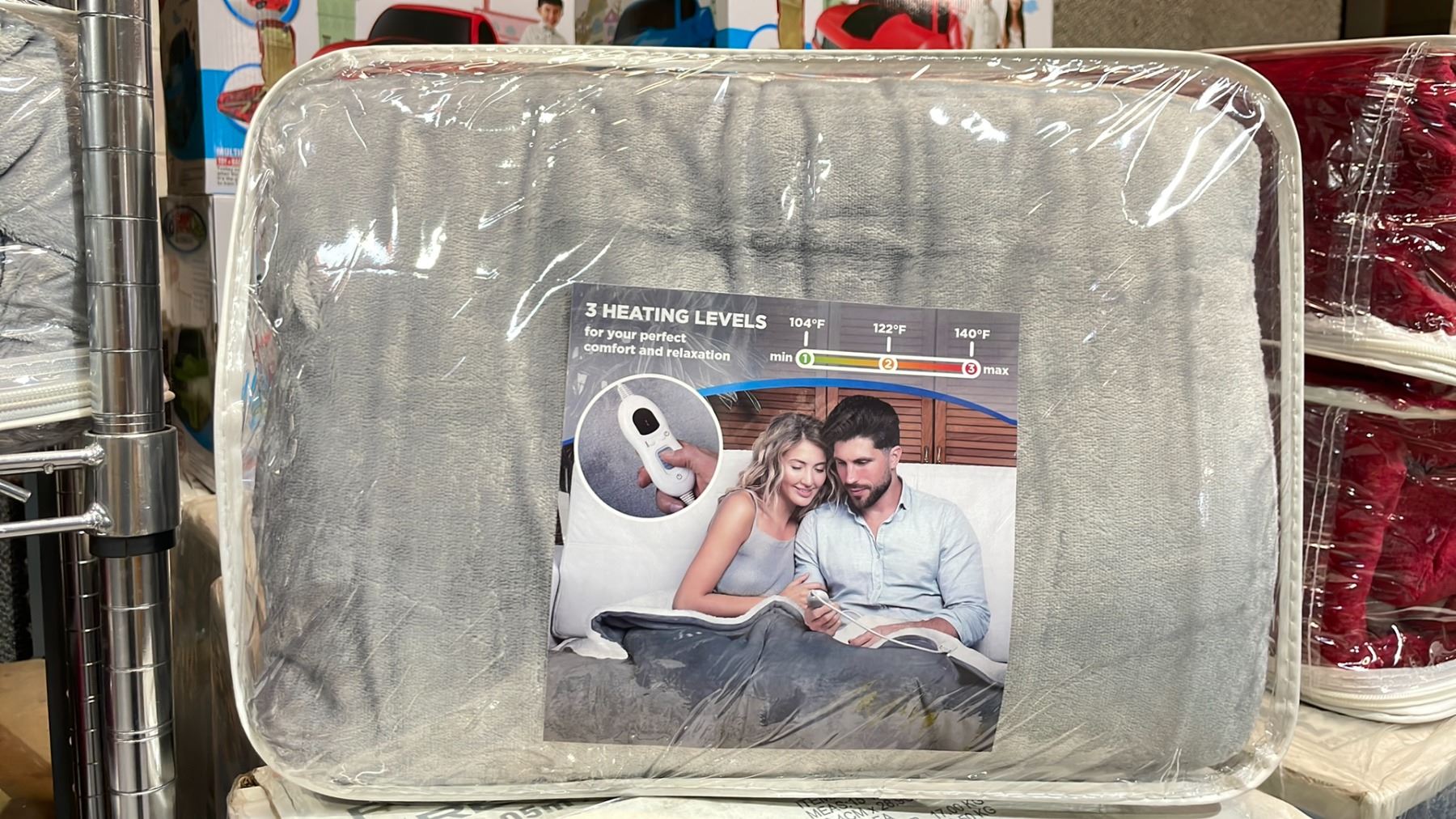 GREY FLEECE LINED HEATED BLANKET WITH 3 HEATING LEVELS