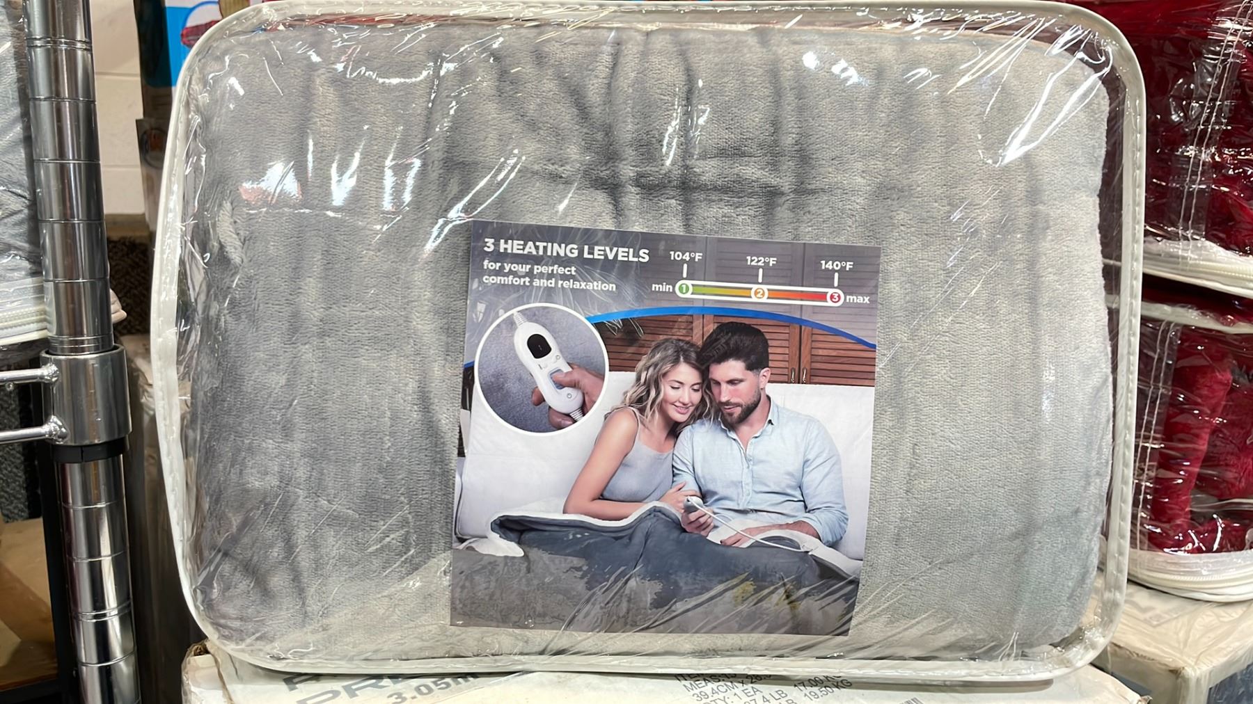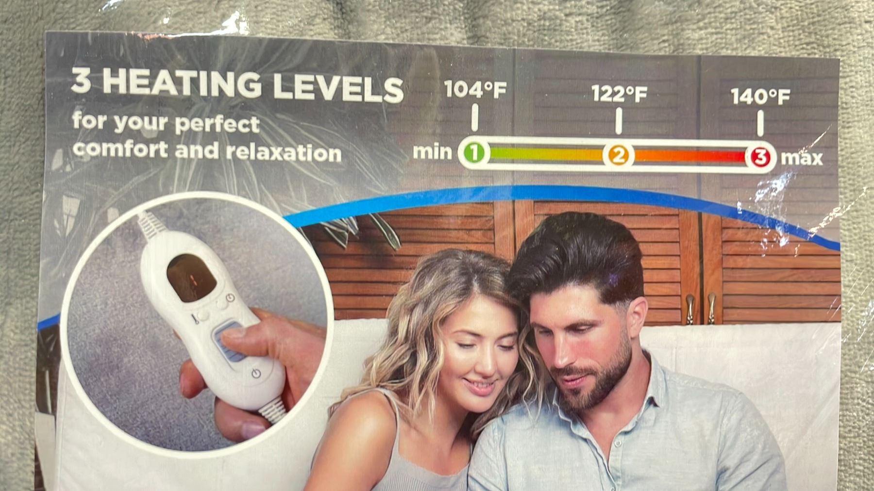 GREY FLEECE LINED HEATED BLANKET WITH 3 HEATING LEVELS