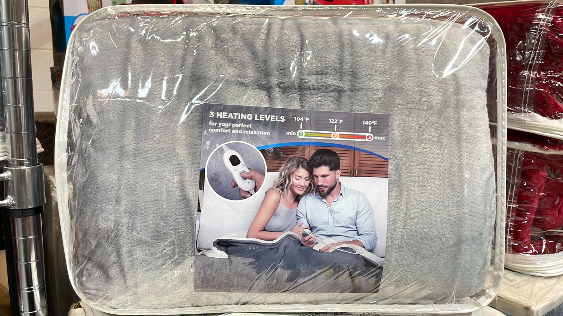 GREY FLEECE LINED HEATED BLANKET WITH 3 HEATING LEVELS