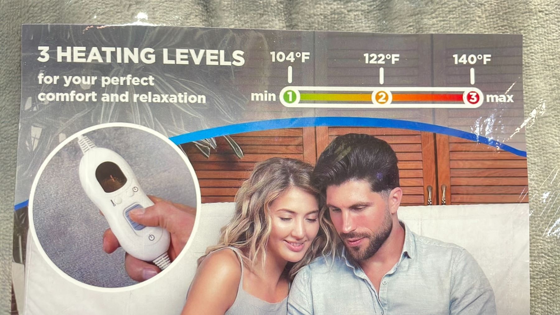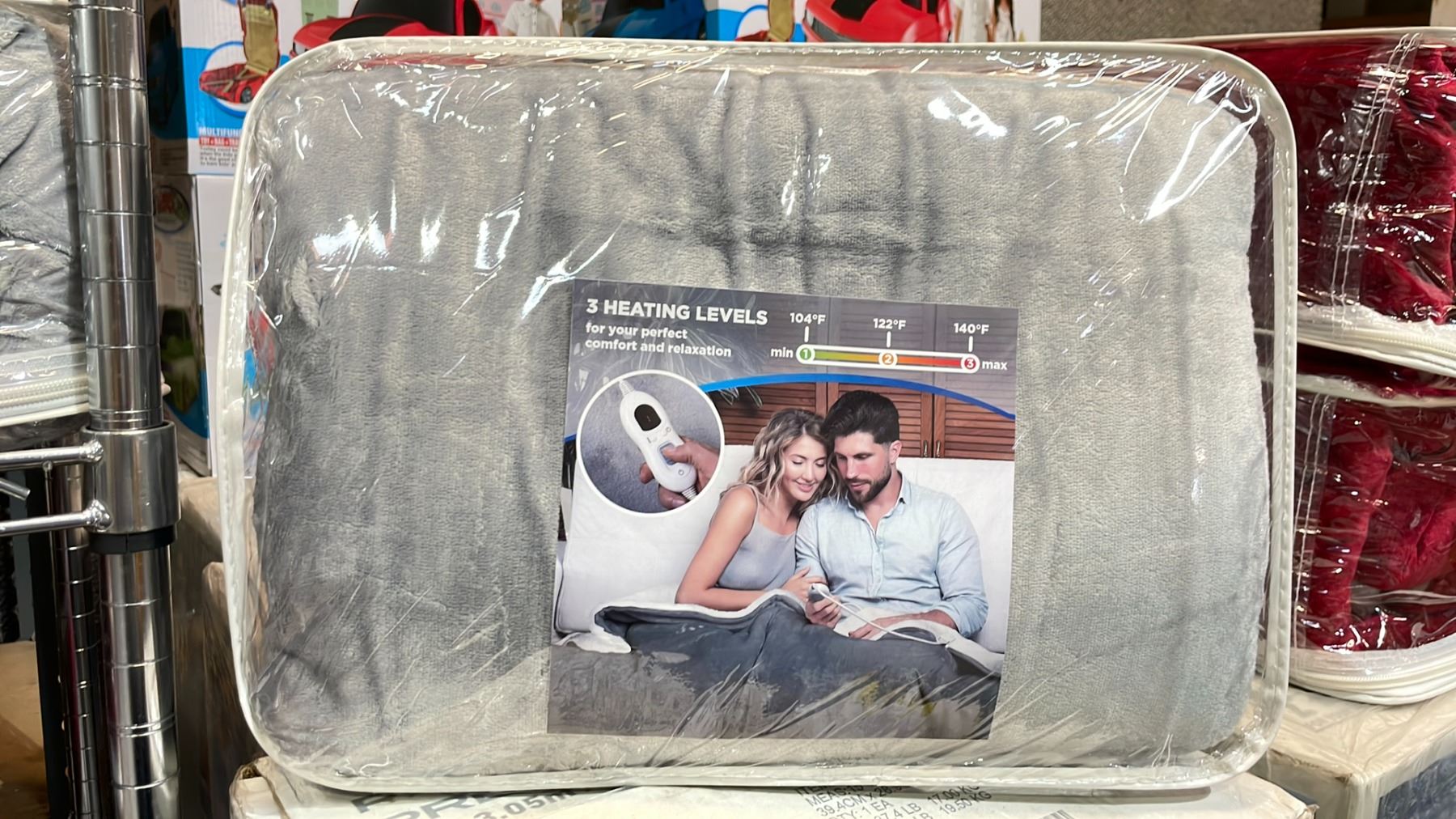 GREY FLEECE LINED HEATED BLANKET WITH 3 HEATING LEVELS