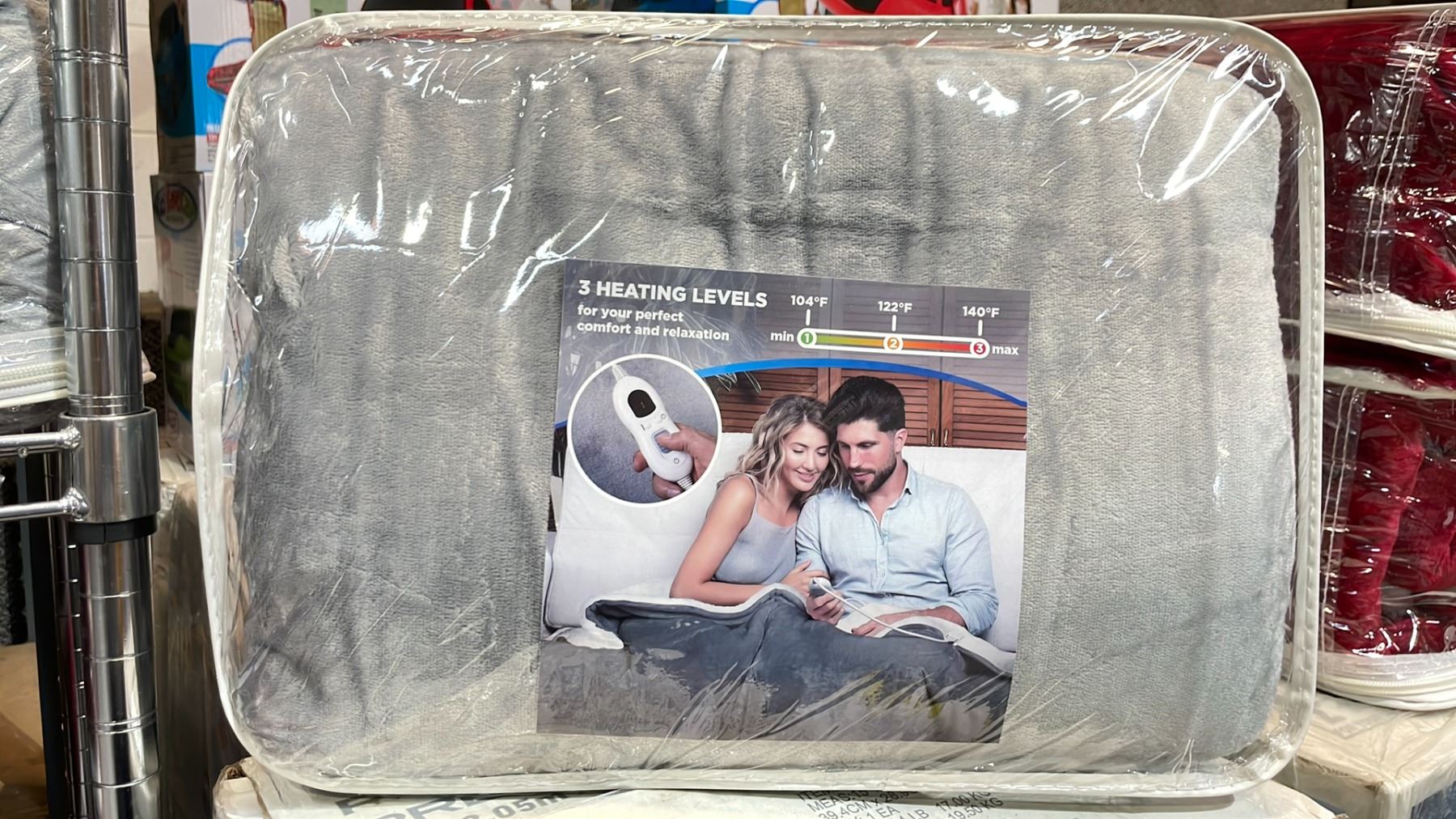 GREY FLEECE LINED HEATED BLANKET WITH 3 HEATING LEVELS