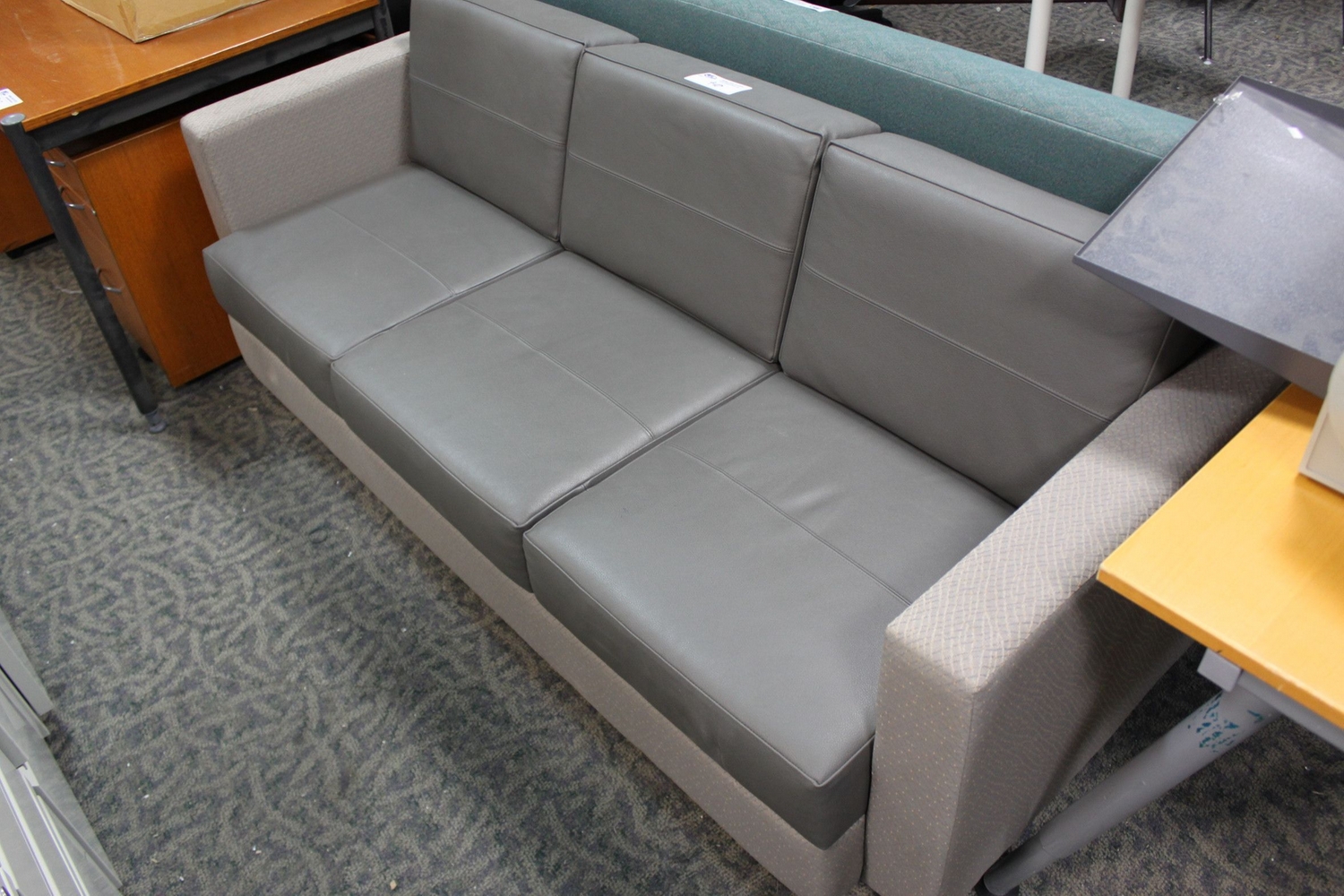 GREY LEATHER 3 SEAT RECEPTION SOFA