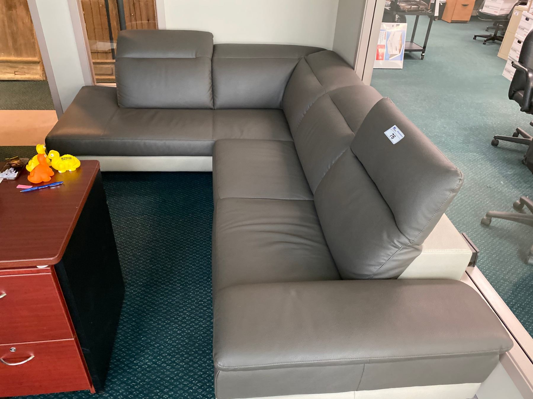 GREY LEATHER SECTIONAL SOFA WITH ADJUSTABLE HEADRESTS