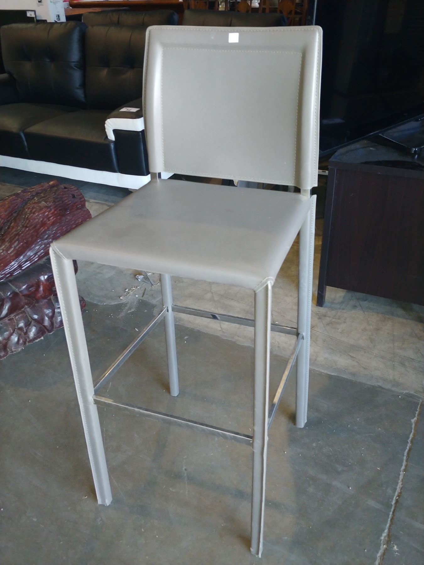 GREY LEATHERETTE & CHROME BAR HEIGHT BAR STOOL