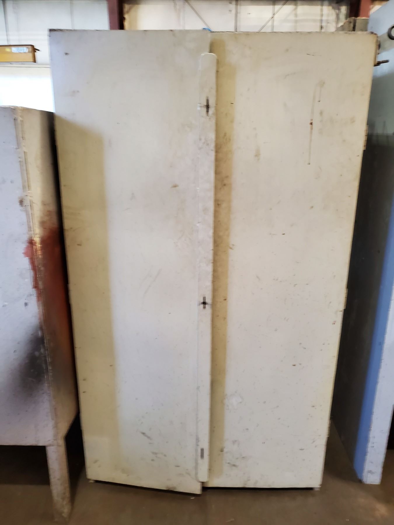 GREY METAL 2 DOOR HEAVY DUTY CABINET 53"L X 41"W X 72"H (INCLUDES CONTENTS)