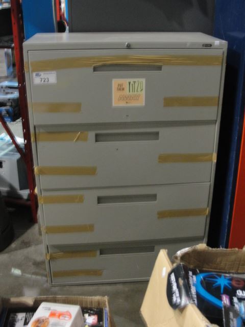 GREY METAL 4 DRAWER LATERAL FILING CABINET