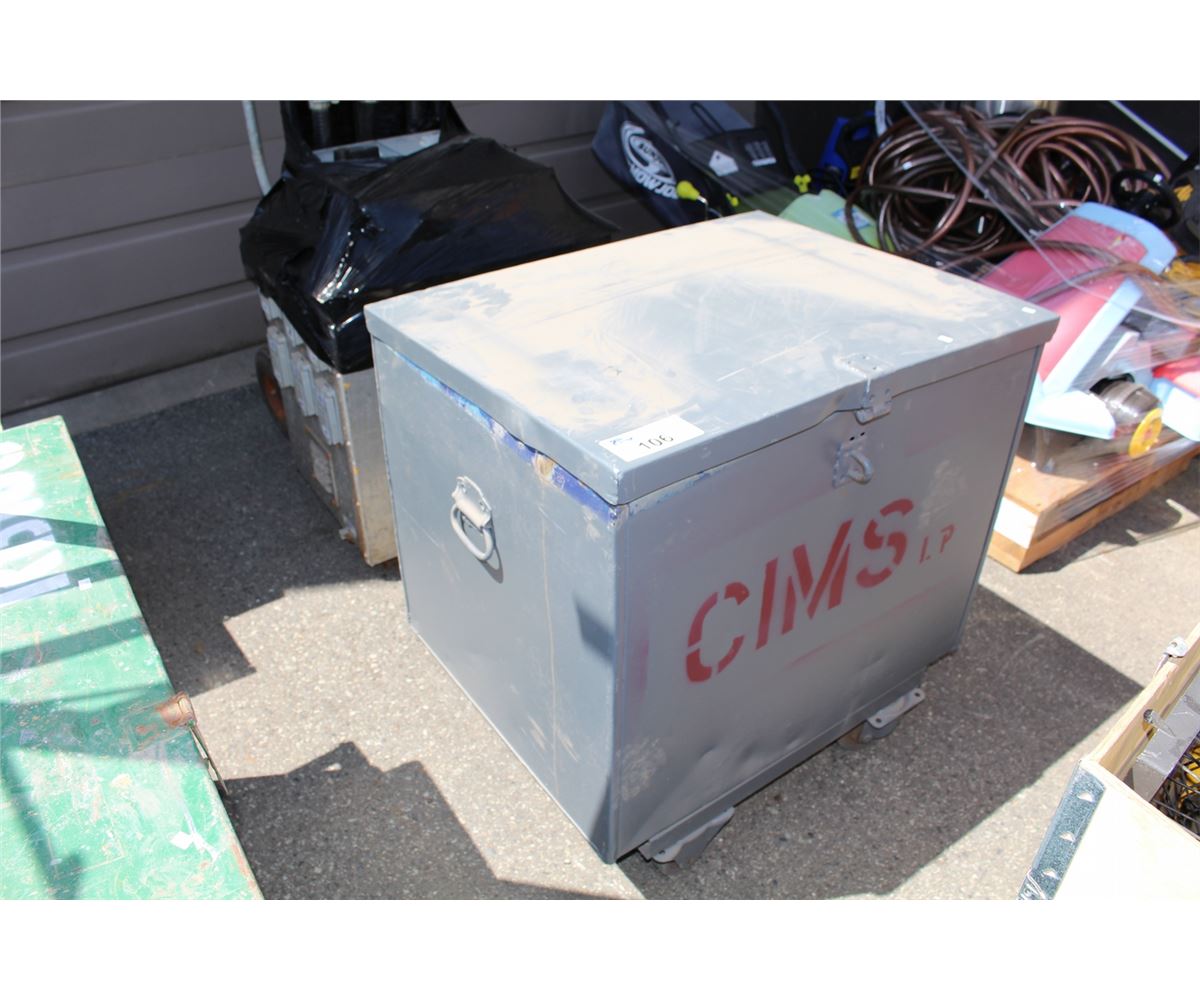 GREY METAL JOB SITE TOOL STORAGE BOX AND CONTENTS