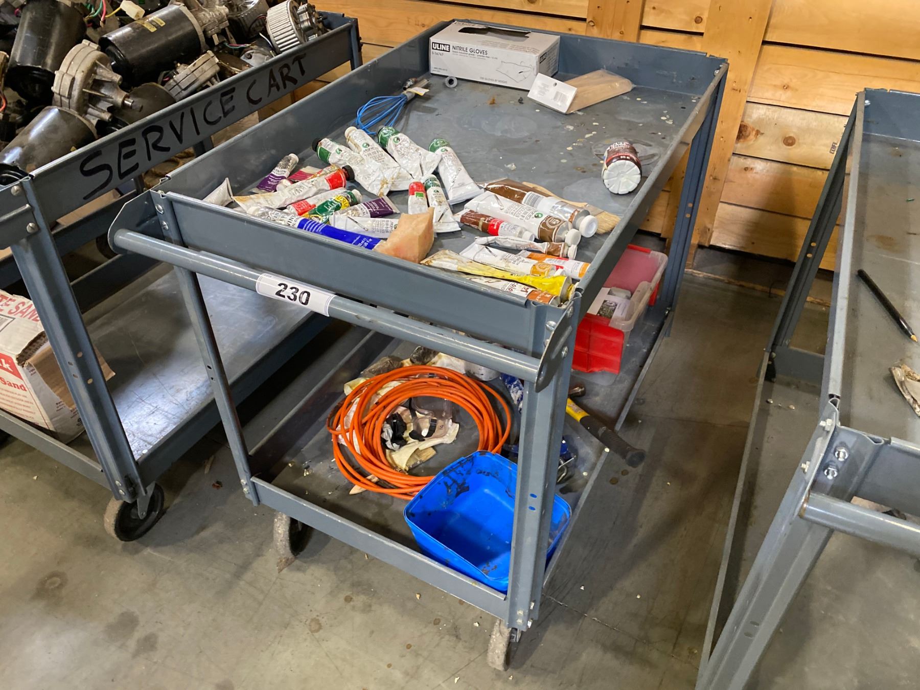 GREY METAL SERVICE CART WITH CONTENTS (IF ANY)