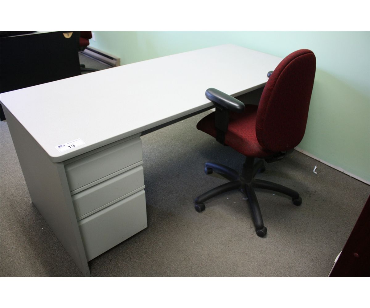GREY OFFICE DESK WITH 3 DRAWER PEDISTAL AND CHAIR