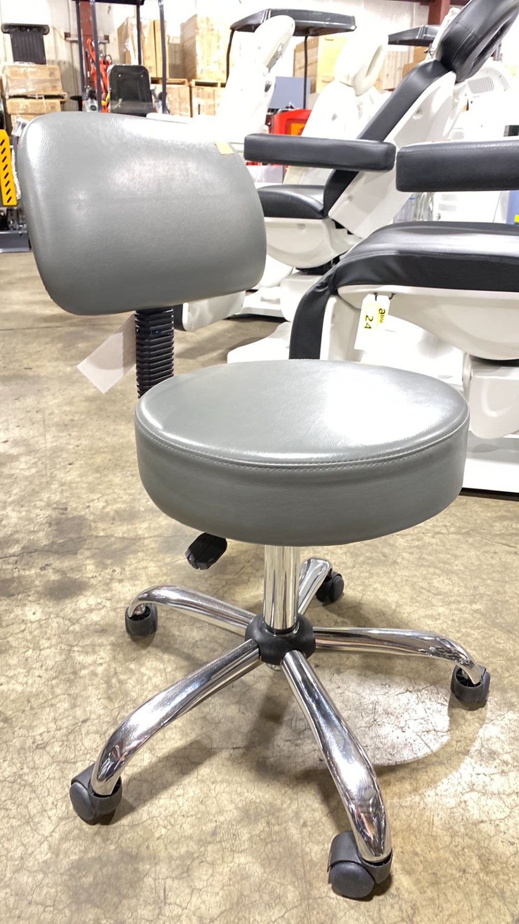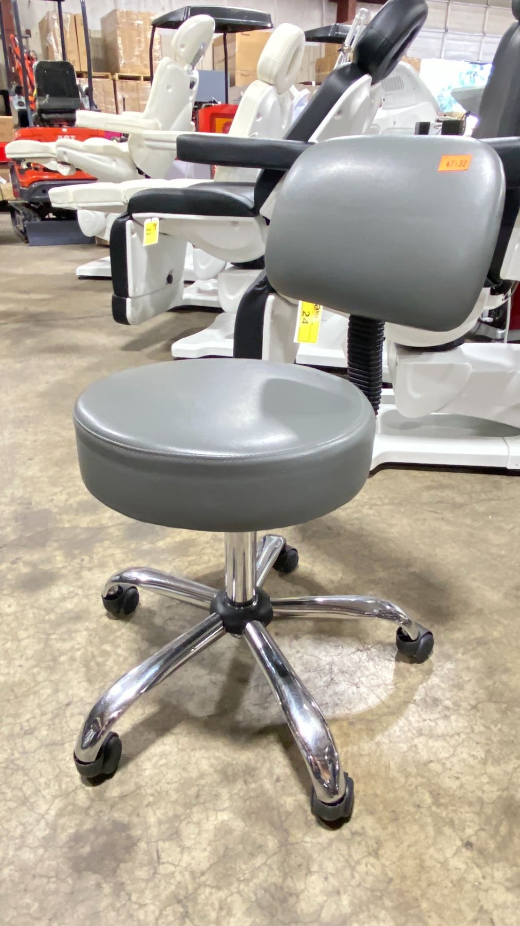 GREY PADDED ADJUSTABLE HEIGHT ROLLING COMMERCIAL ESTHETICIAN STOOL