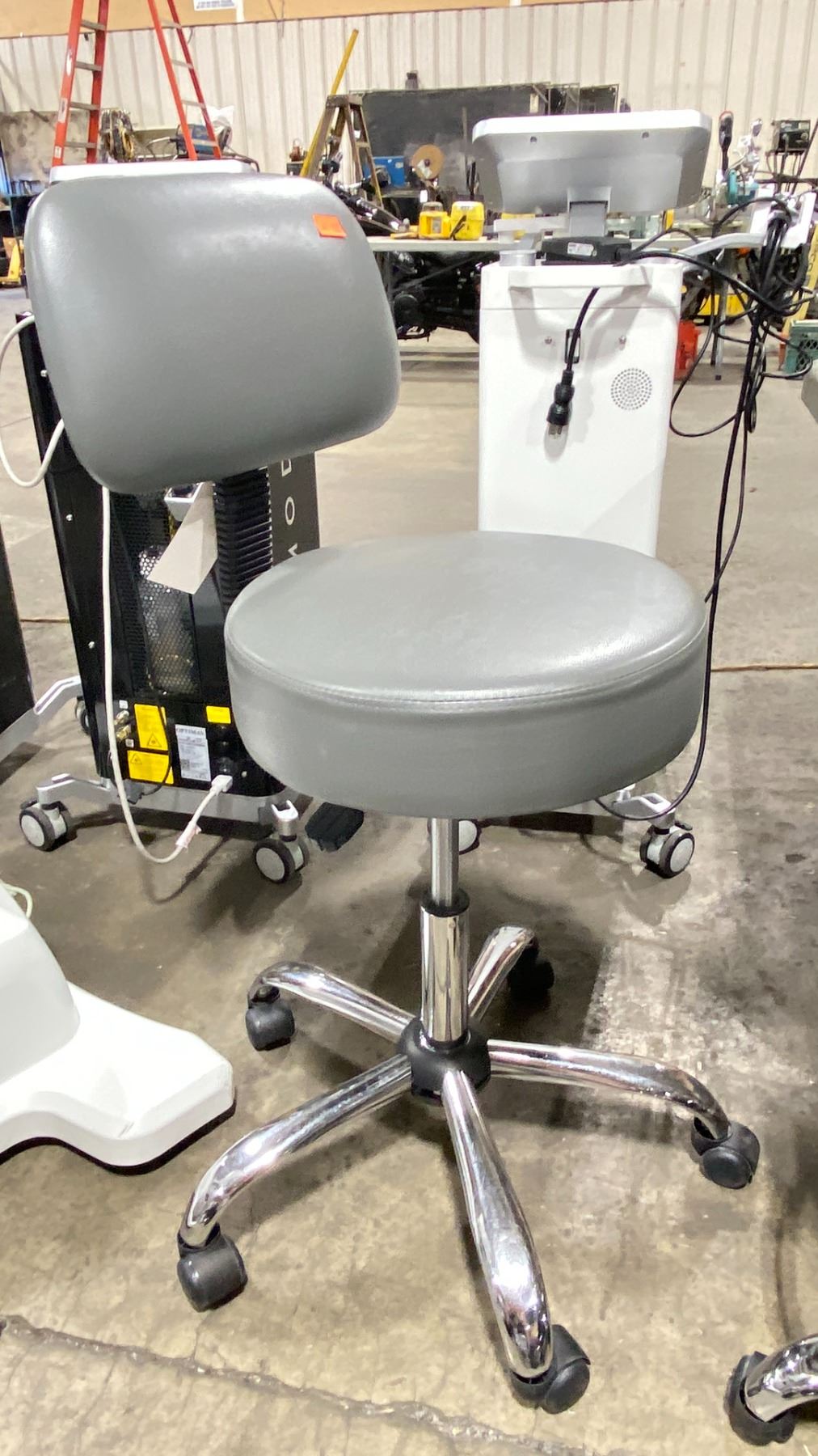 GREY PADDED ADJUSTABLE HEIGHT ROLLING COMMERCIAL ESTHETICIAN STOOL