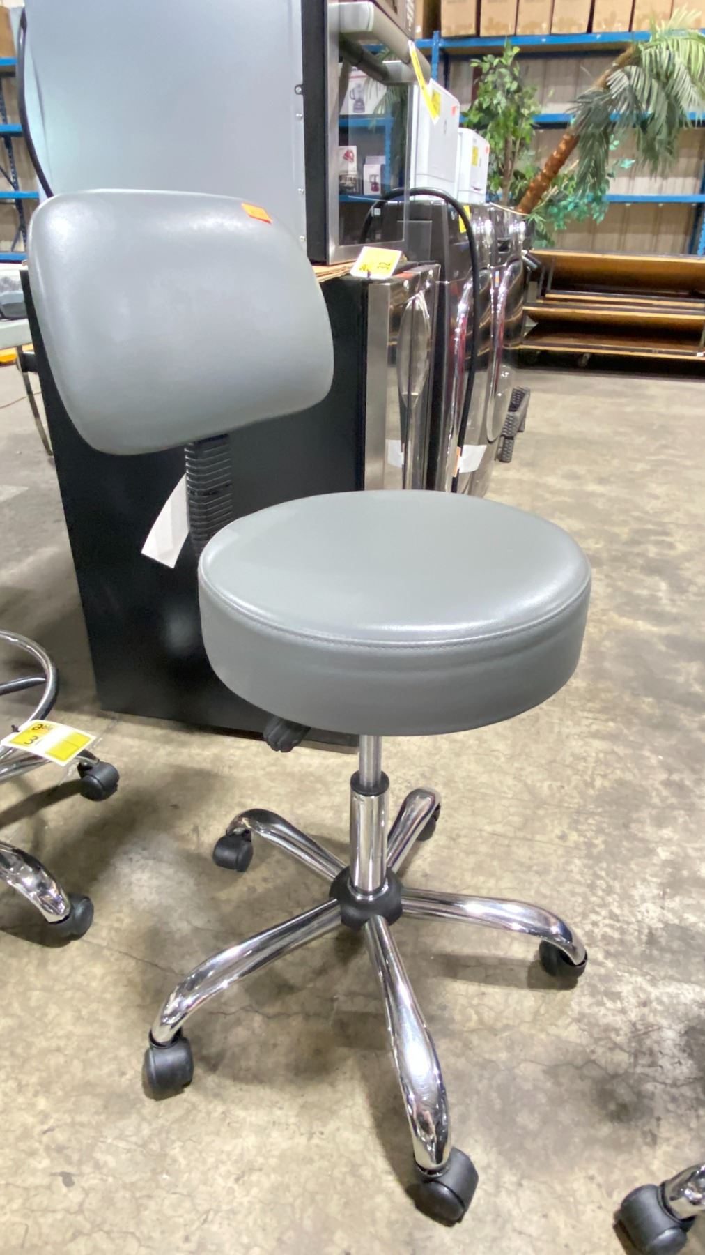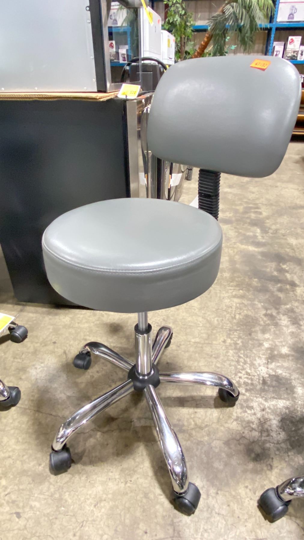 GREY PADDED ADJUSTABLE HEIGHT ROLLING COMMERCIAL ESTHETICIAN STOOL