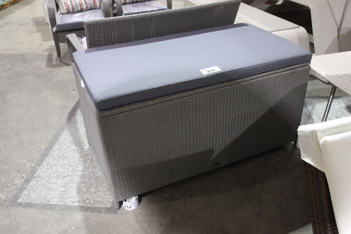 GREY RATTAN 51 X 28  CUSHIONED DECK STORAGE BOX