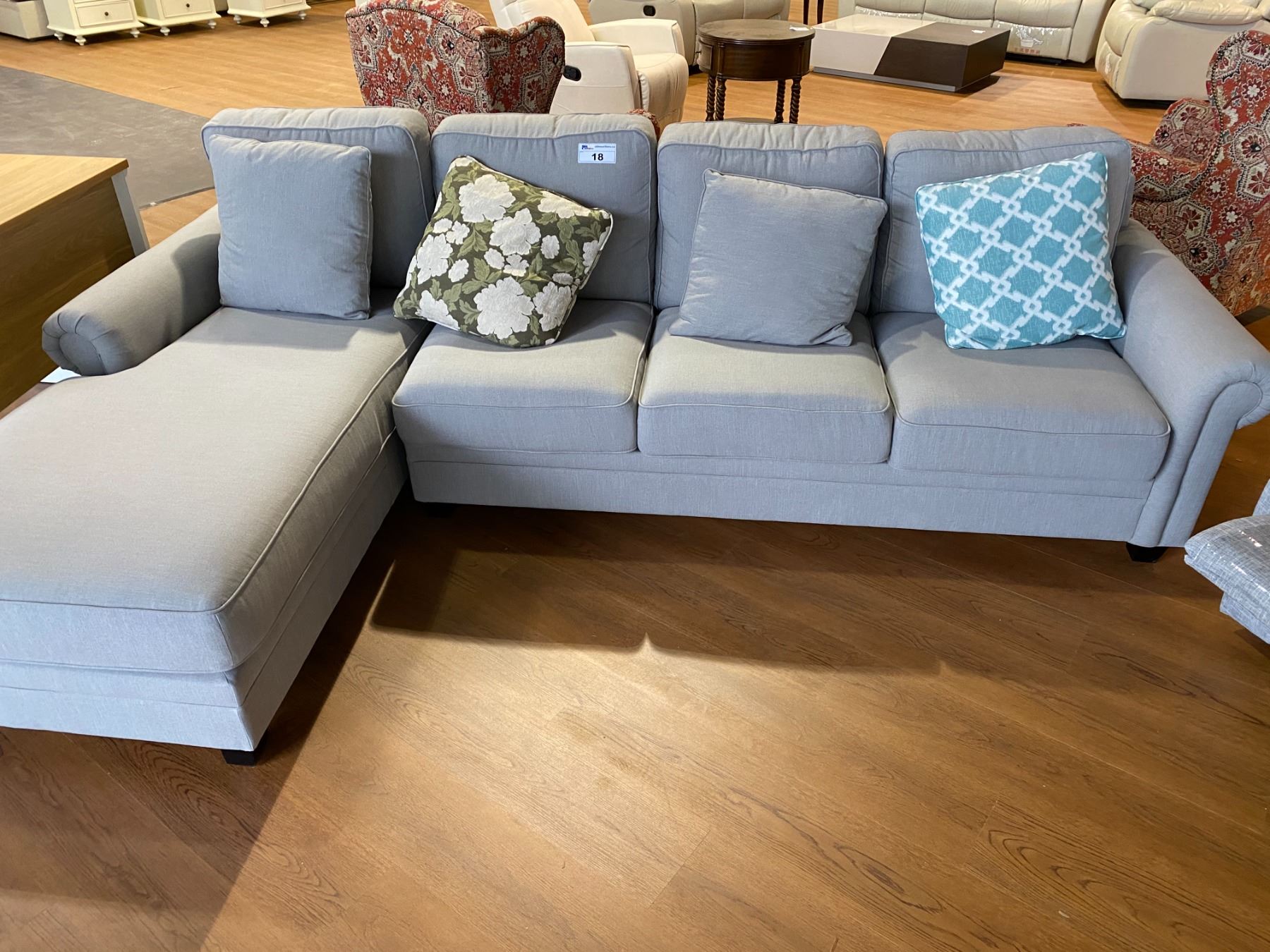 GREY SECTIONAL SOFA SET WITH 3 SEAT SOFA AND CHAISE LOUNGE WITH THROW CUSHIONS