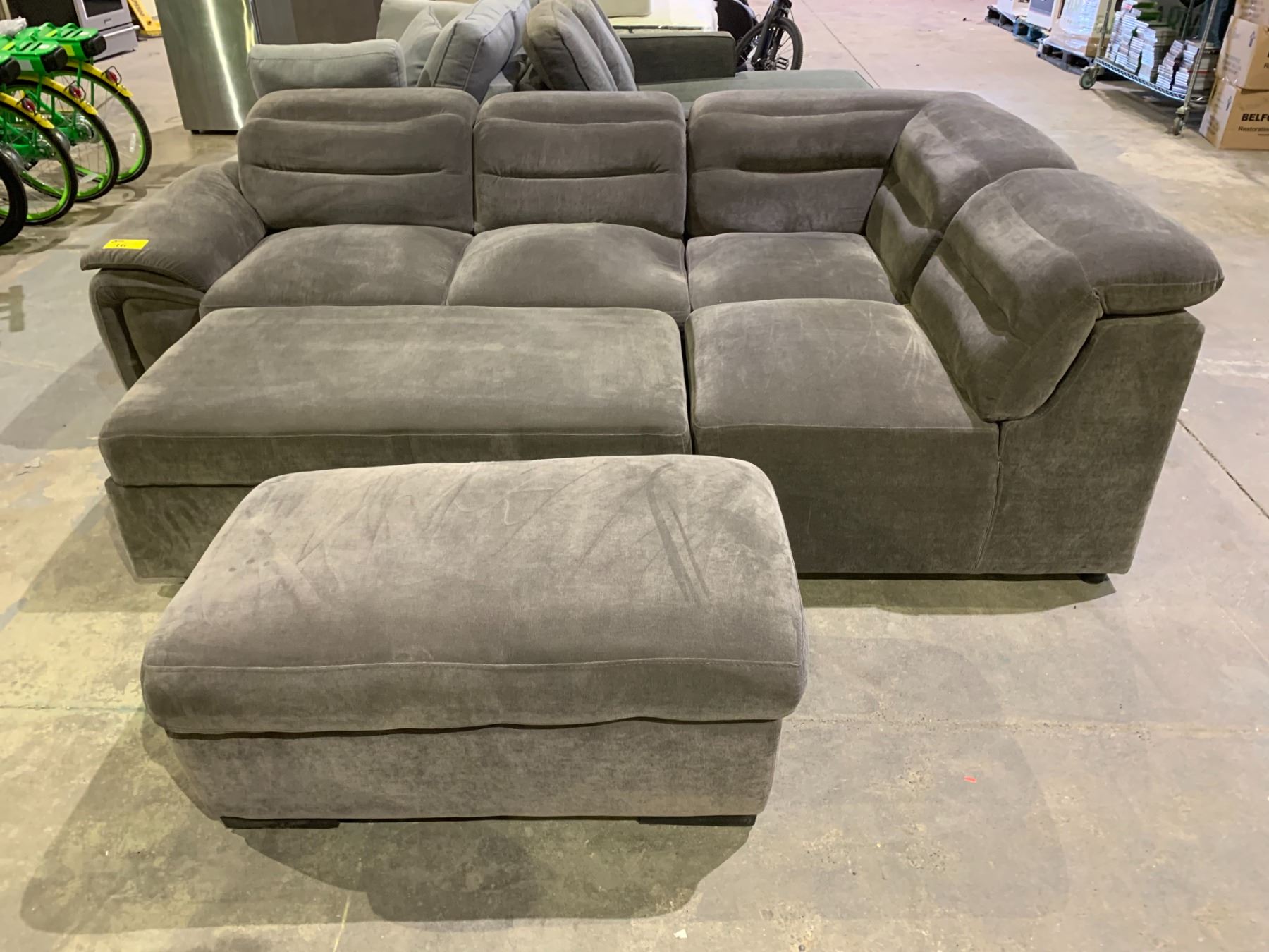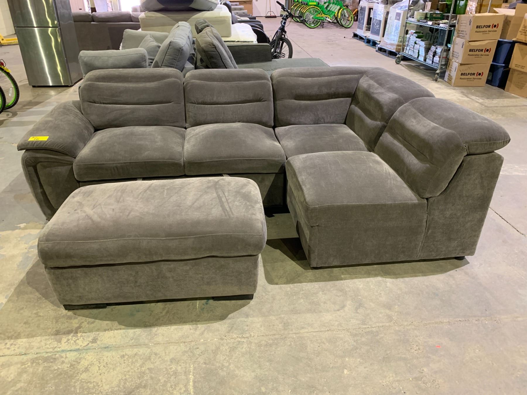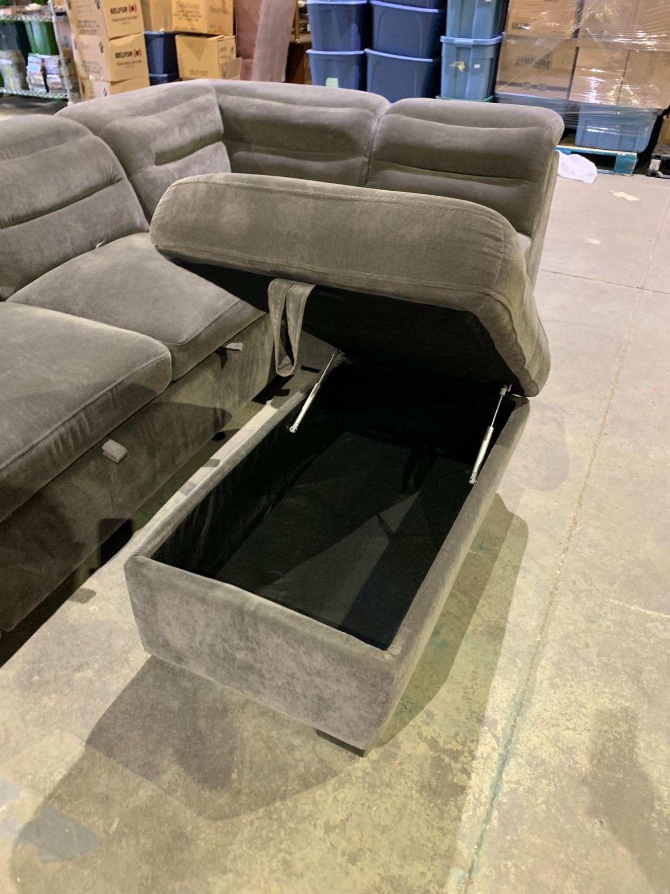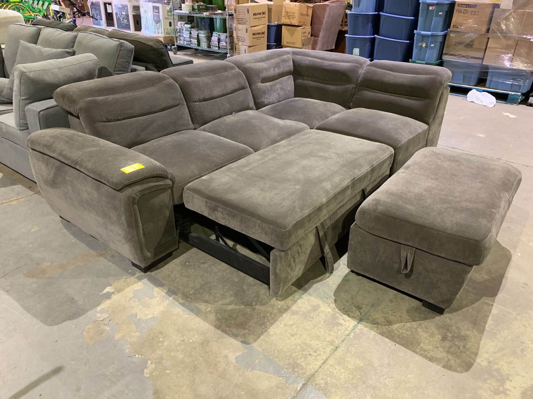GREY SECTIONAL SOFA WITH PULL OUT BED AND STORAGE OTTOMAN