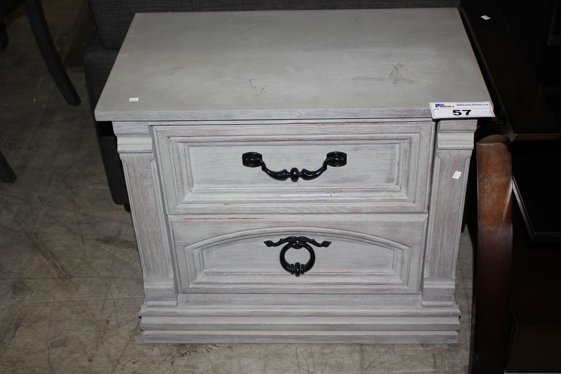 GREY SOLID WOOD 2 DRAWER NIGHT STAND