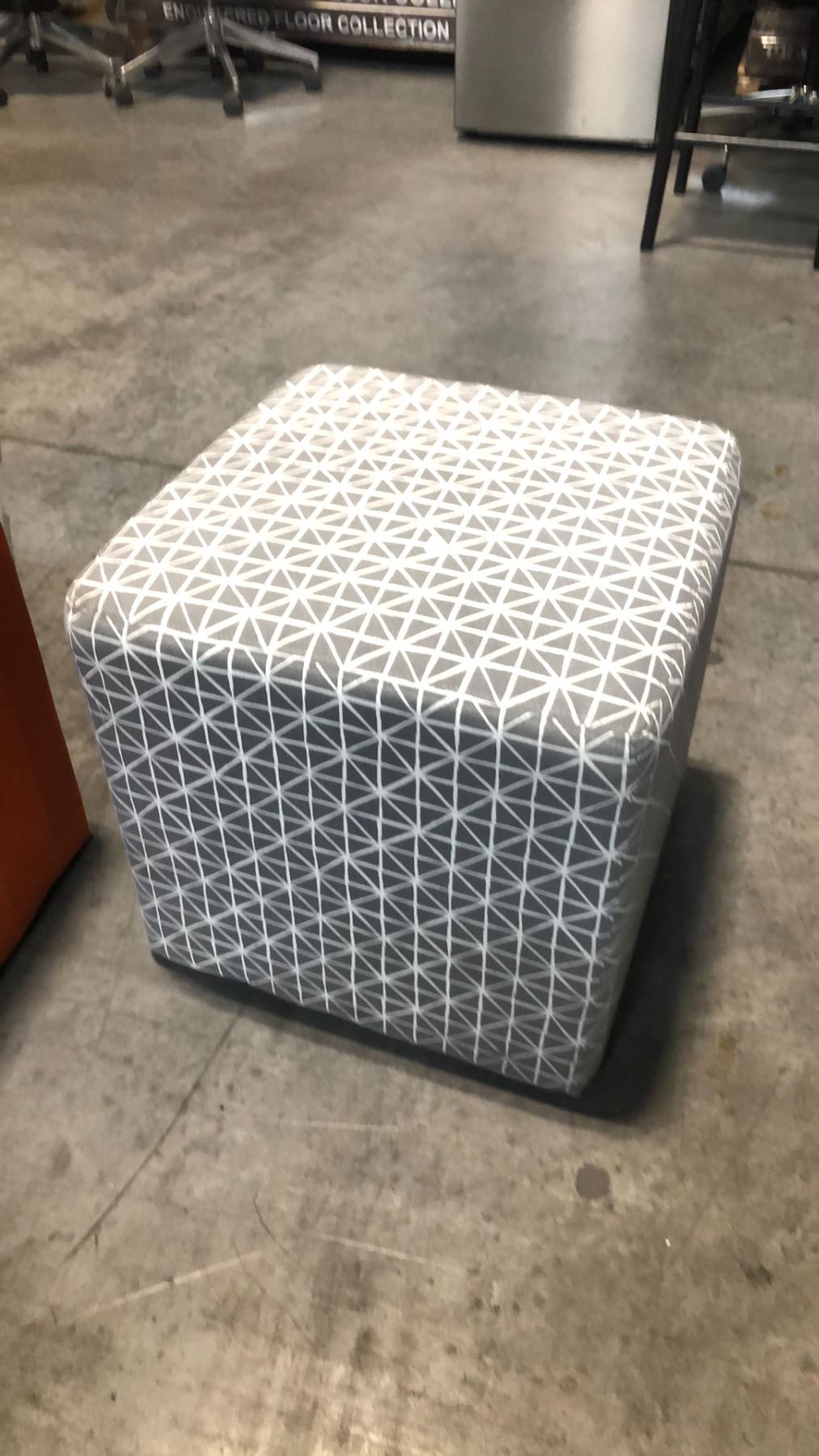 GREY TRIANGLE PATTERN CUBE OTTOMAN D18" X W18" X H18"
