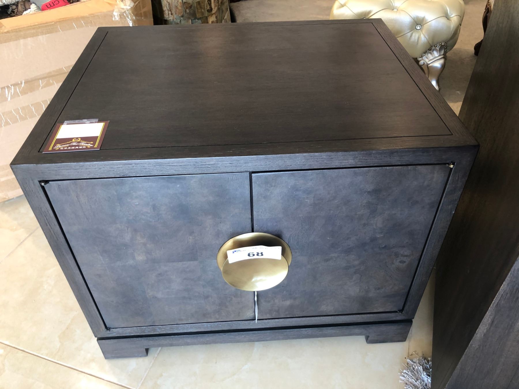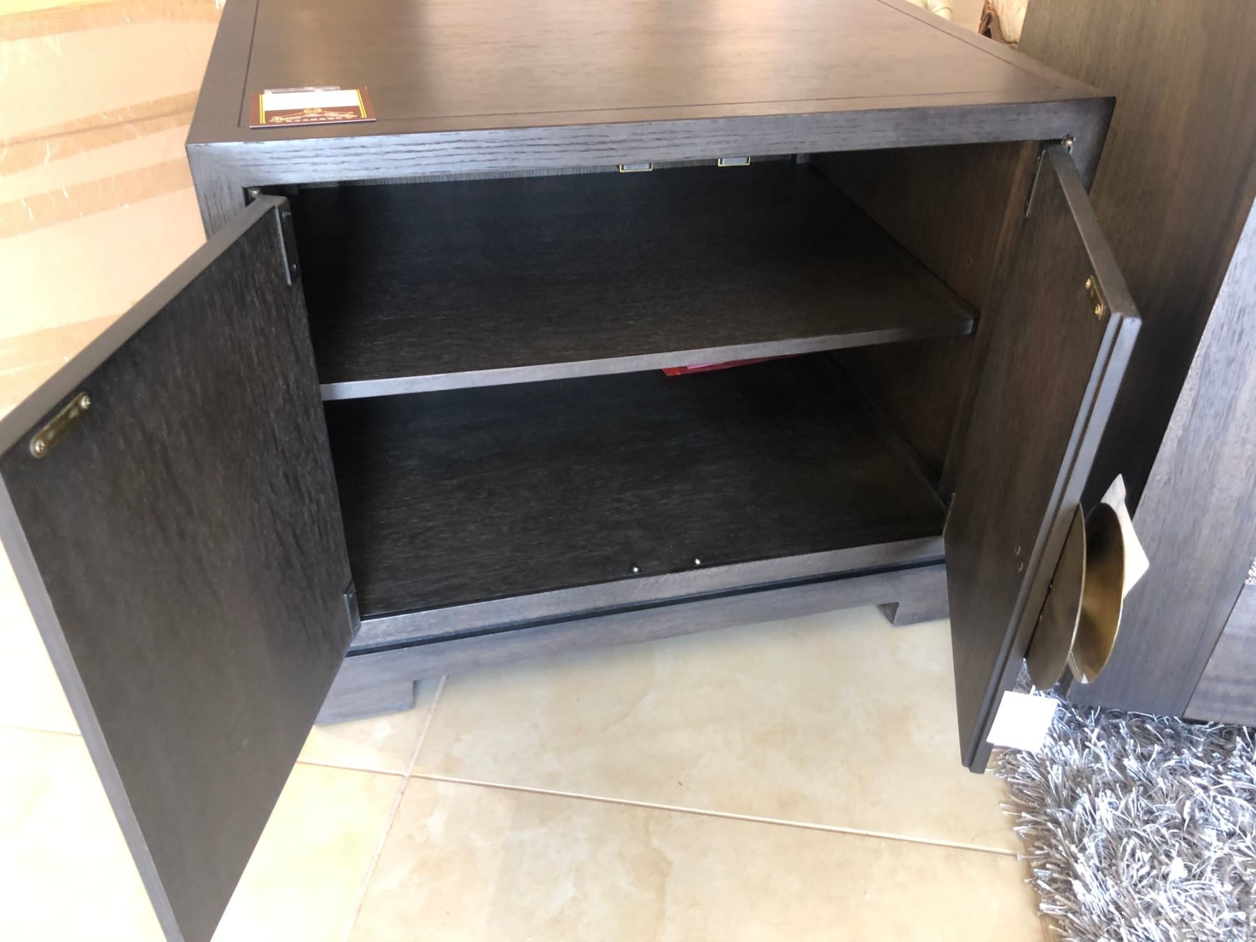 GREY TWO DOOR SIDE CABINET. RETAIL $1,890.00