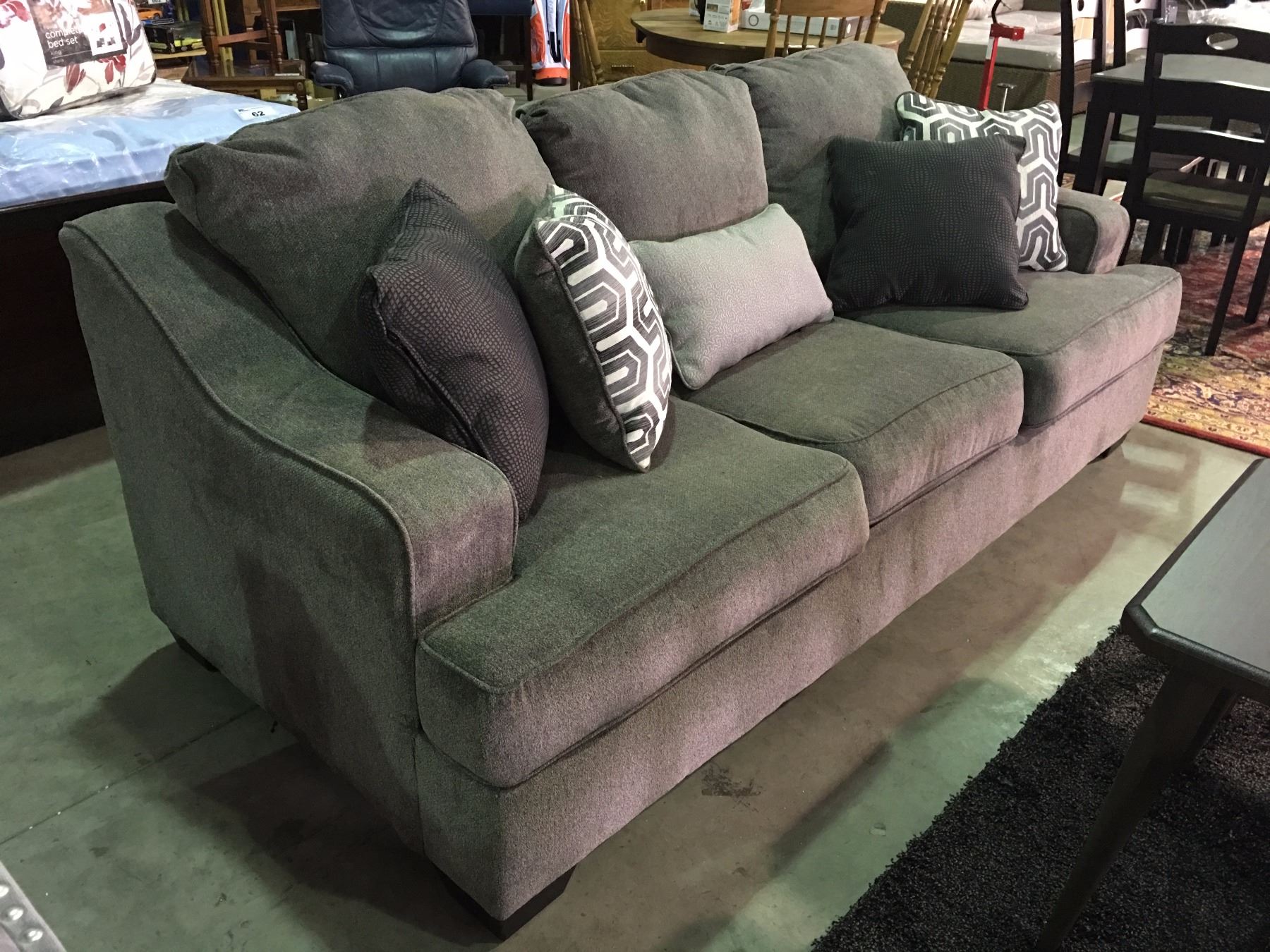GREY UPHOLSTERED 3 SEATER SOFA WITH 5 THROW CUSHIONS