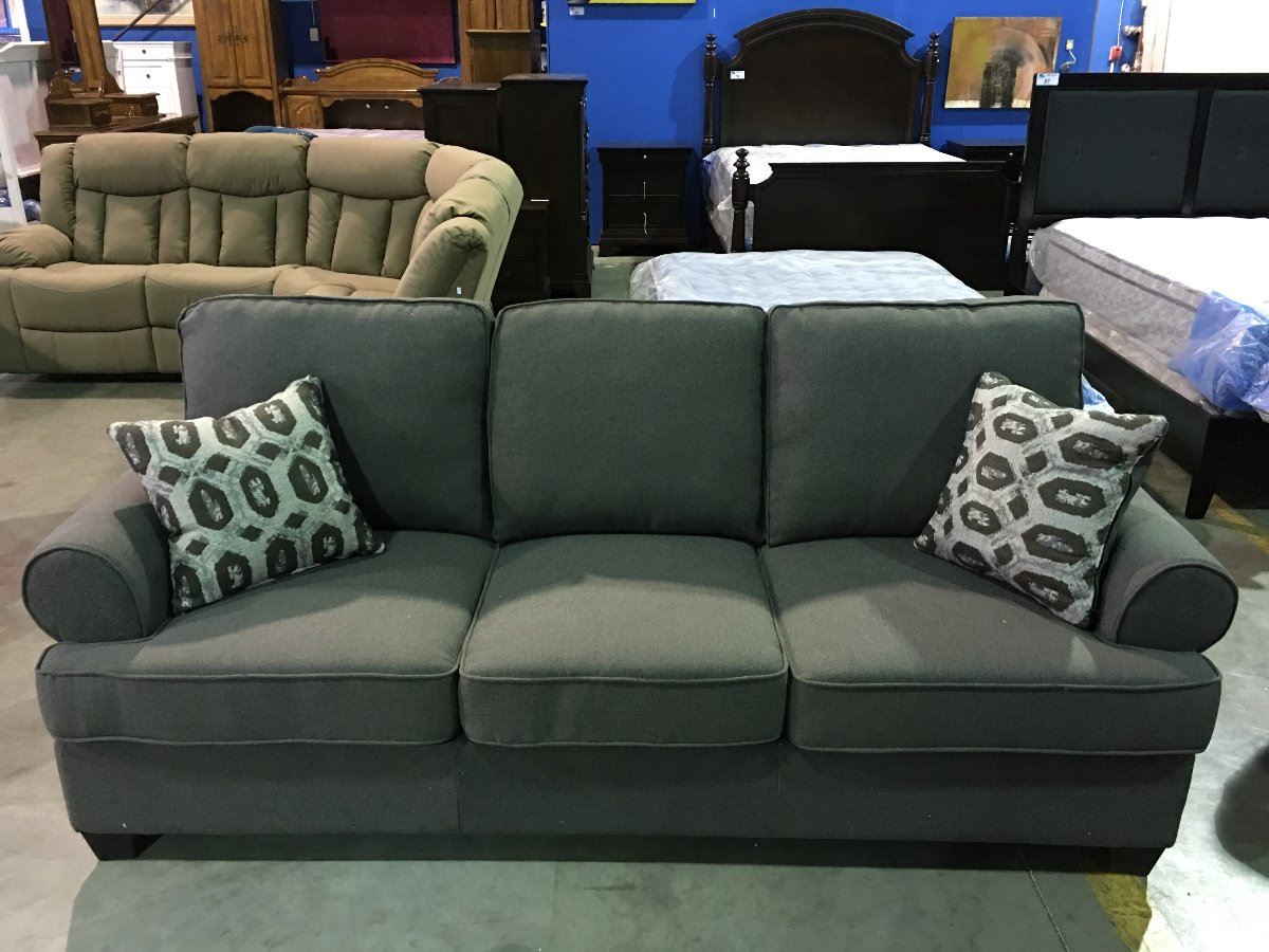 GREY UPHOLSTERED SOFA BED WITH 2 THROW CUSHIONS