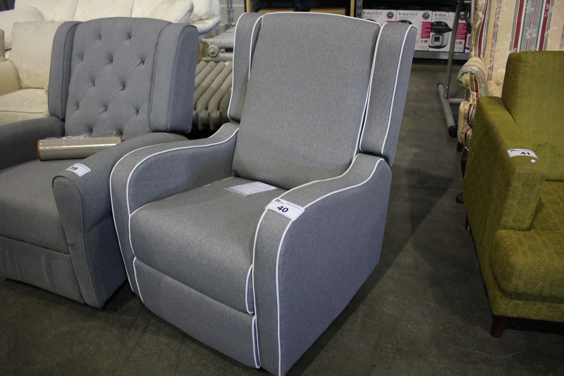 GREY/WHITE FABRIC RECLINING ARMCHAIR