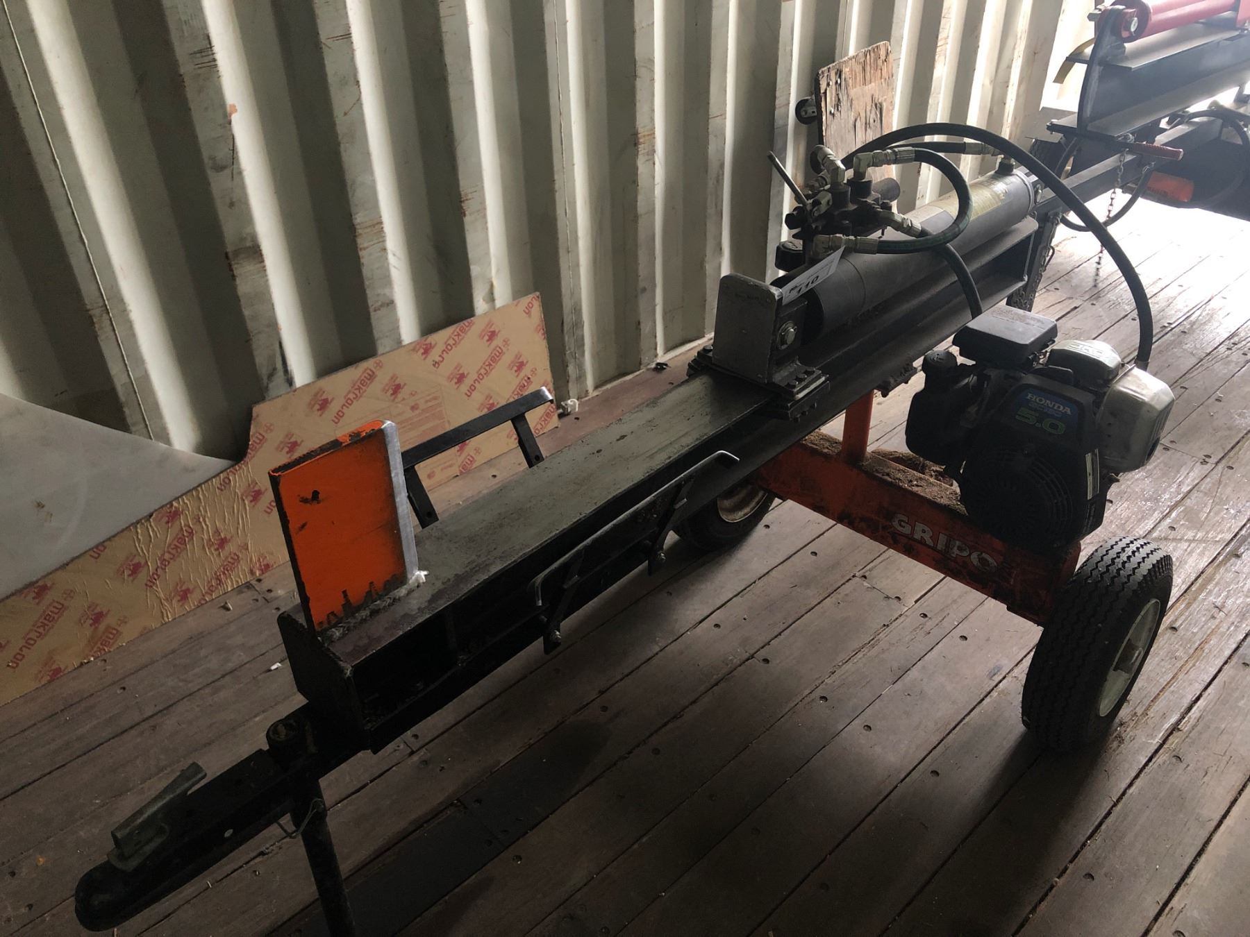 GRIPO PORTABLE GAS HYDRAULIC LOG SPILTTER ON TRAILER WITH HONDA 5 HP MOTOR