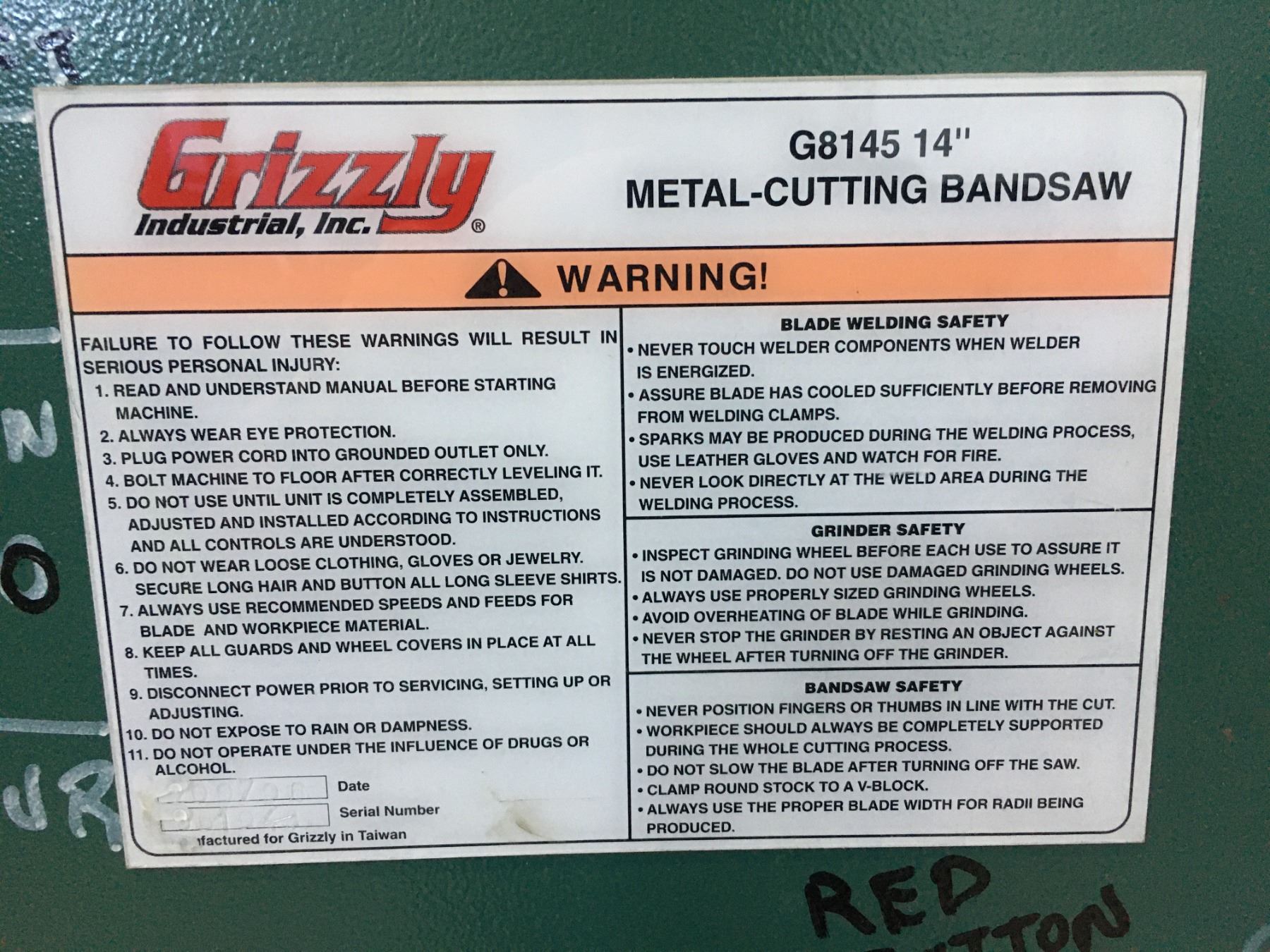 GRIZZLY INDUSTRIAL 14" METAL CUTTING BANDSAW-MODEL G8145