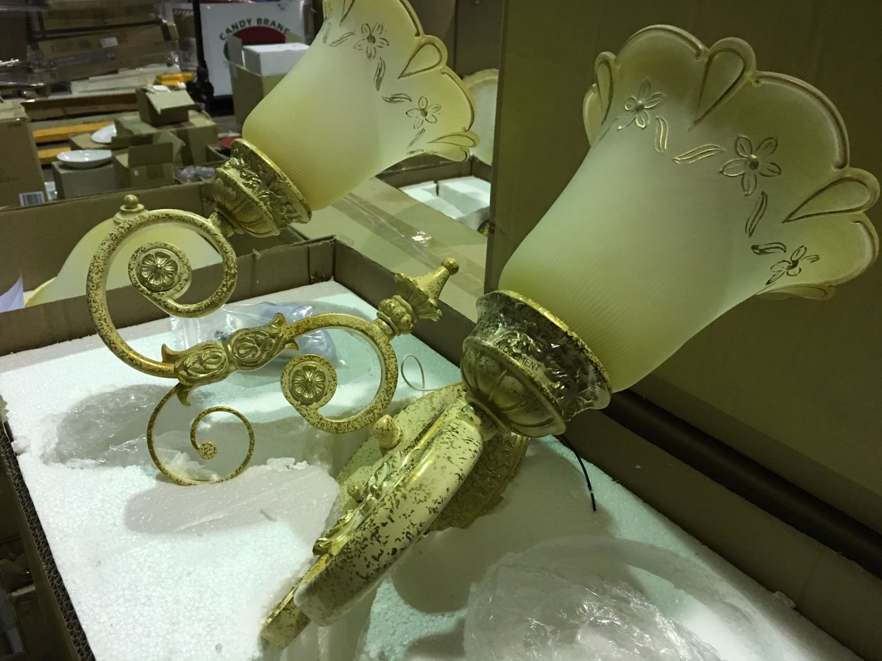 GROUP 3 OF GOLD AND PALE YELLOW DOUBLE LIGHT WALL SCONCES