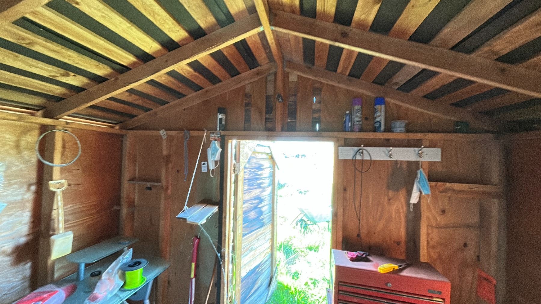 GROUP LOT. 2 WHEELBARROWS, 2 BENCHES-ONE NEEDS REPAIR, ANY CONTENTS IN SHED BESIDE IT IF WANTED