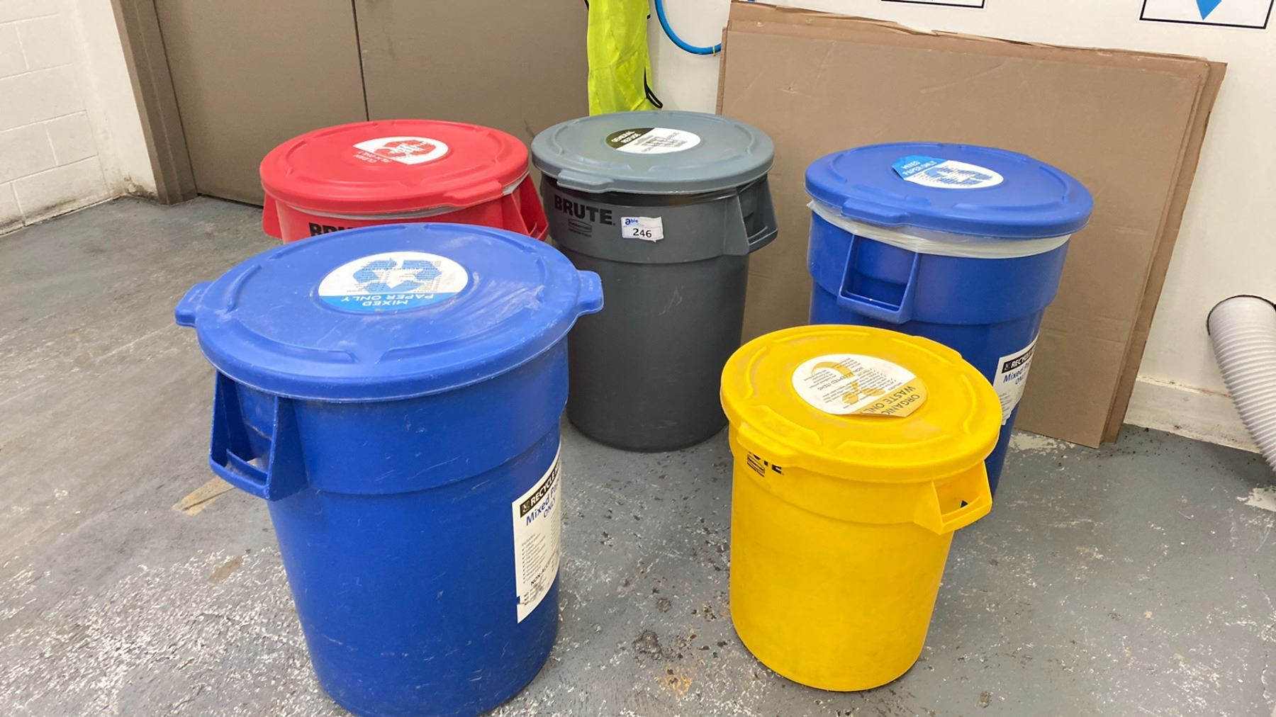 GROUP LOT ASST WASTE BINS WITH LIDS. LOCATED IN PRE-WEIGH ROOM