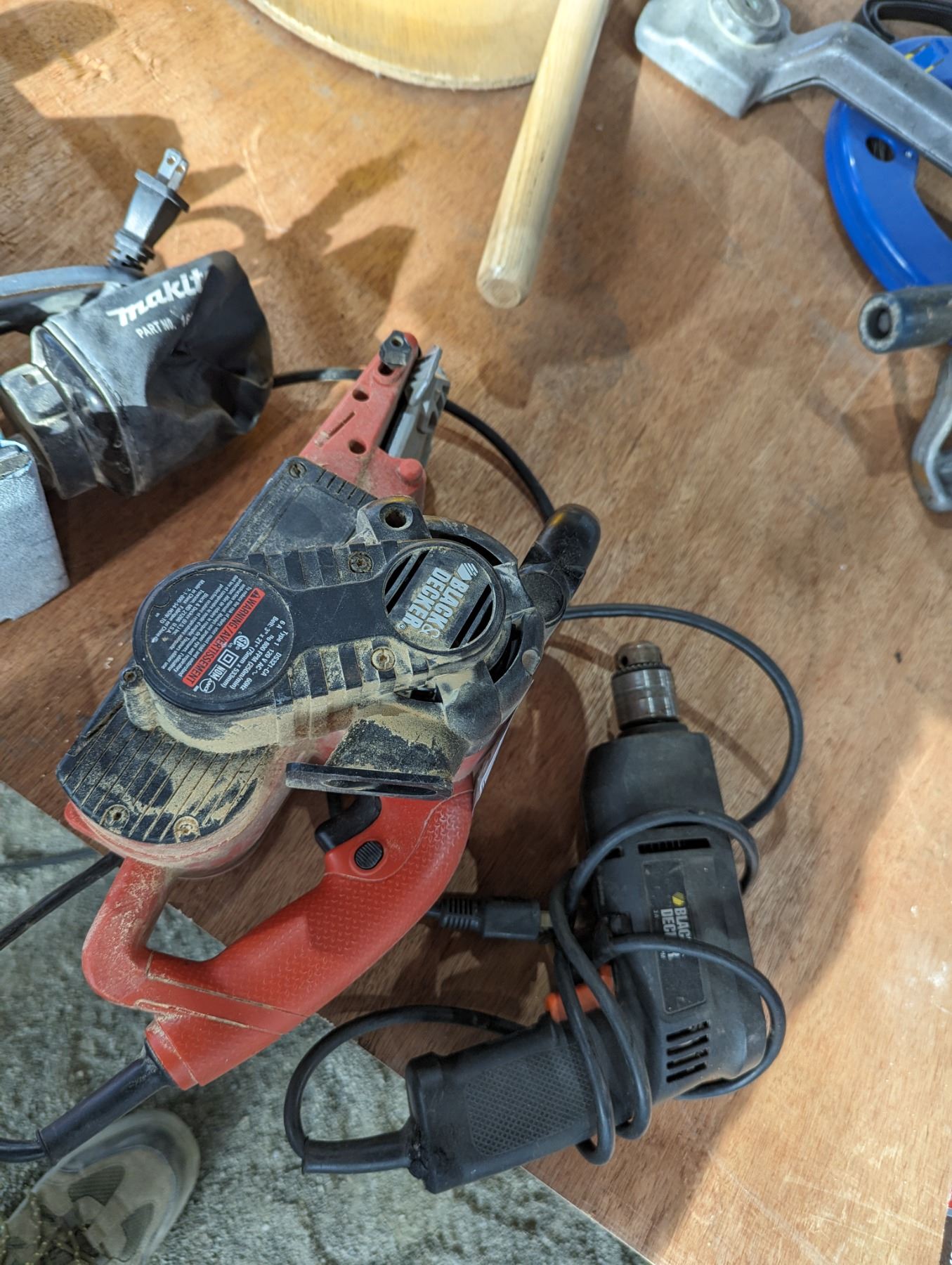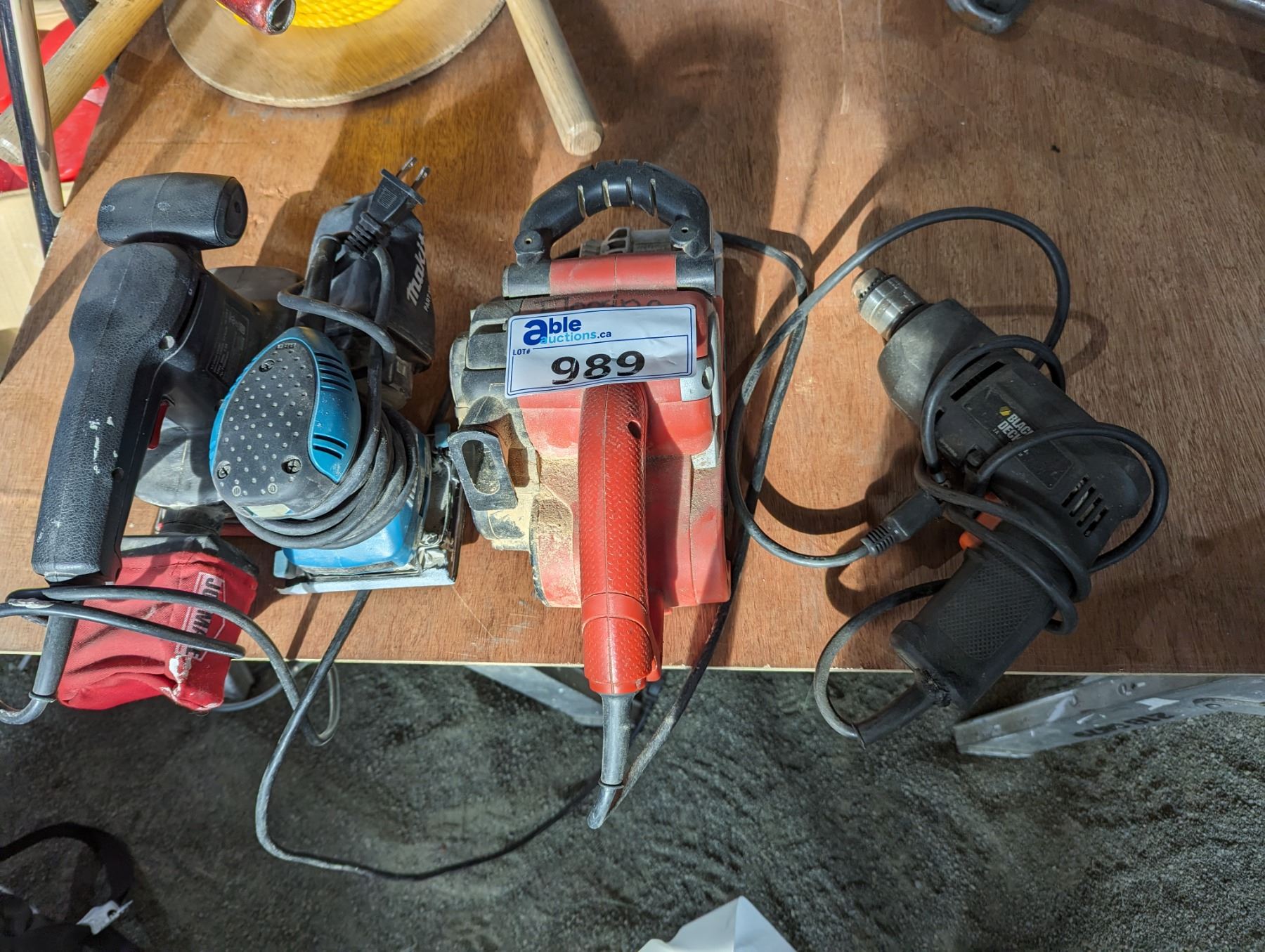 GROUP LOT - BLACK & DECKER BELT SANDER, MILWAUKEE PALM SANDER & JOBMATE FLAT SANDER & BLACK & DECKER ELECTRIC DRILL