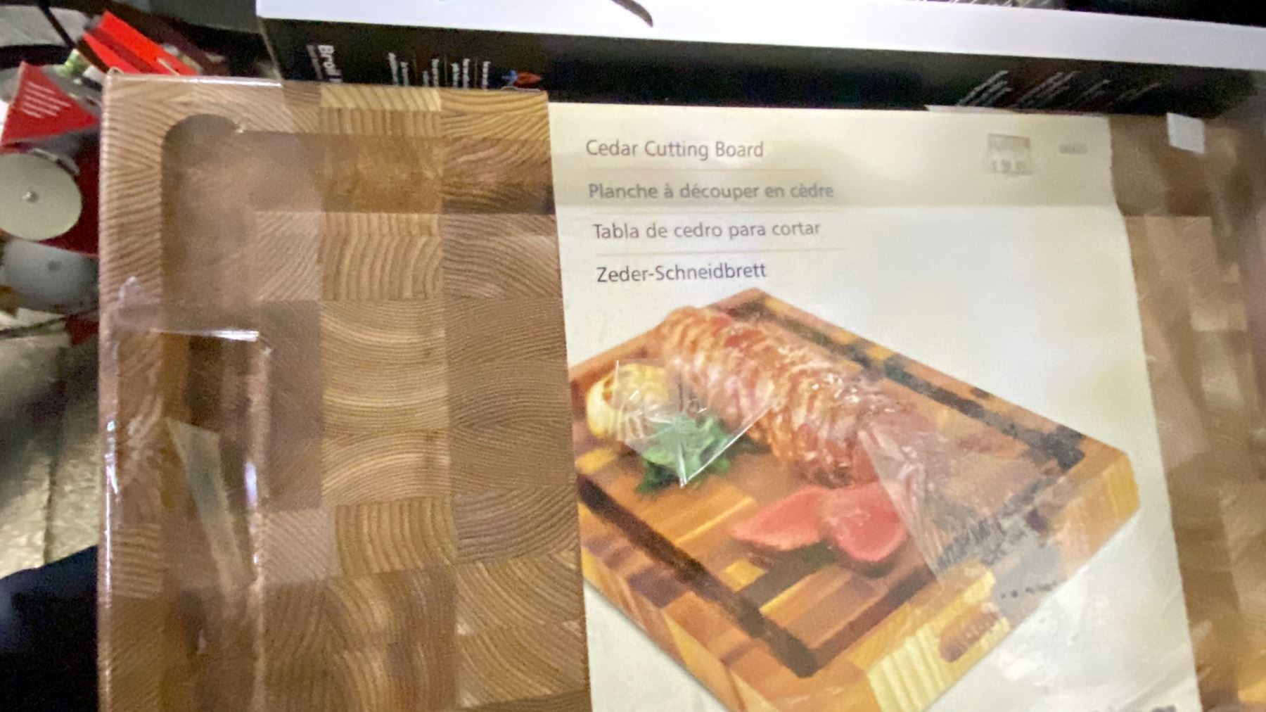 GROUP LOT CEDAR CUTTING BOARD, PREMIUM SPATULA, PIZZA CUTTER WHEEL, INFRARED THERMOMETER, LONG