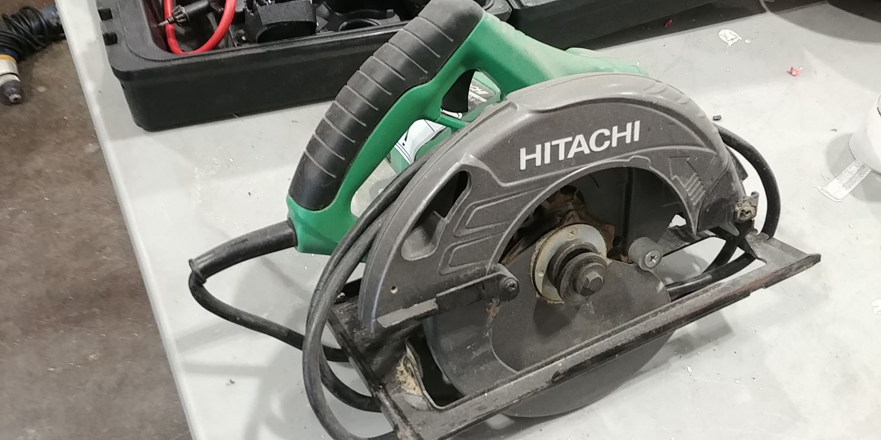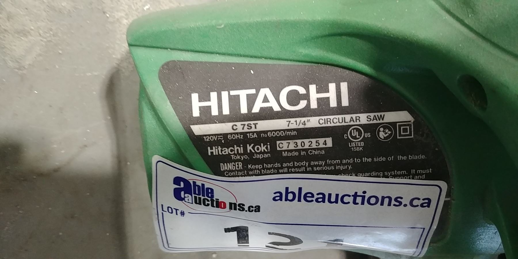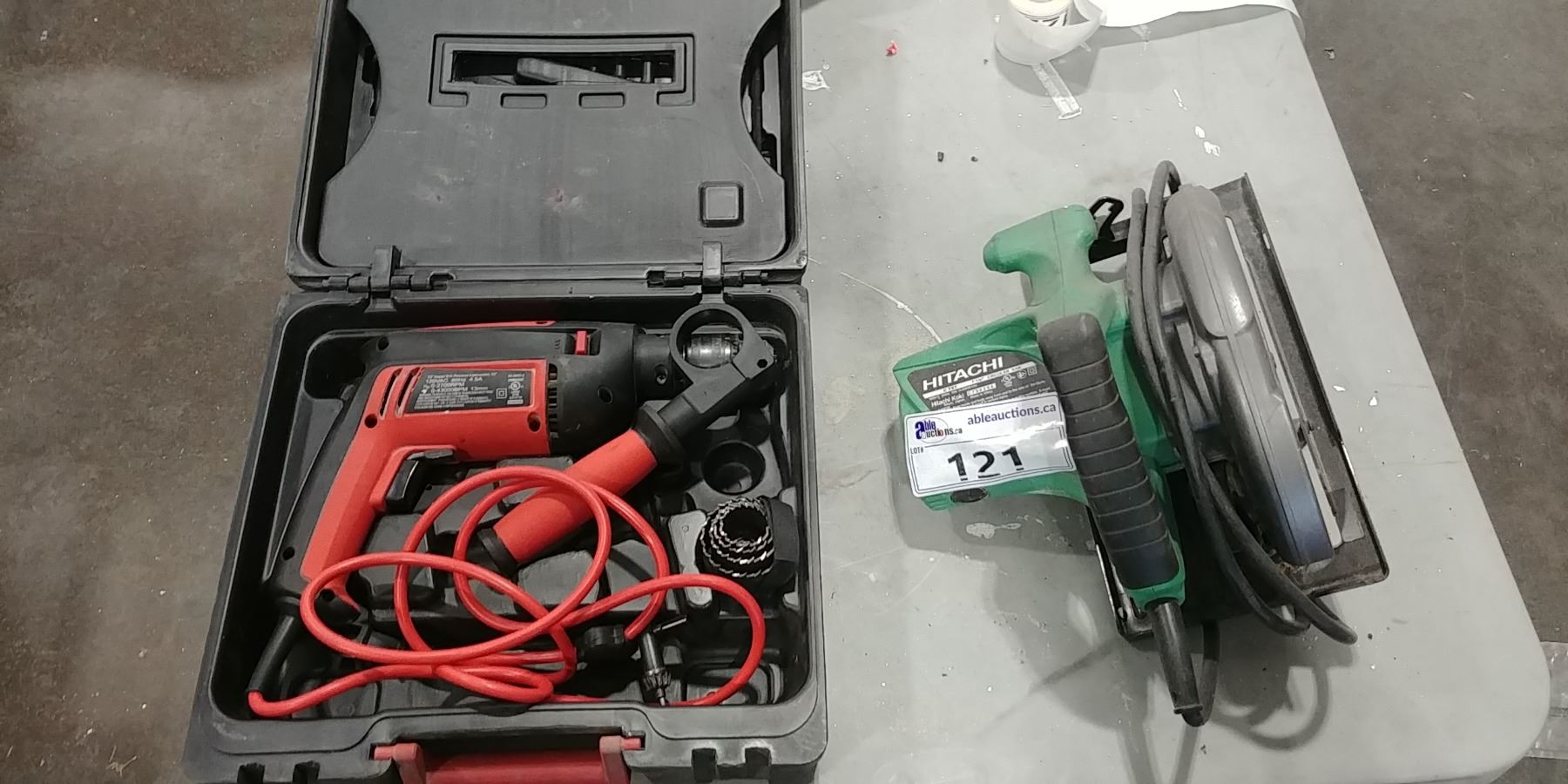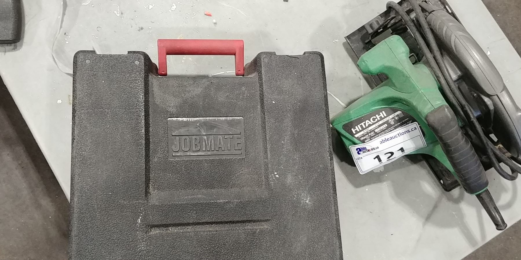 GROUP LOT. HITACHI CIRCULAR SAW MODEL C7ST & JOBMATE 1/2" IMPACT DRILL KIT WITH BITS AND CASE