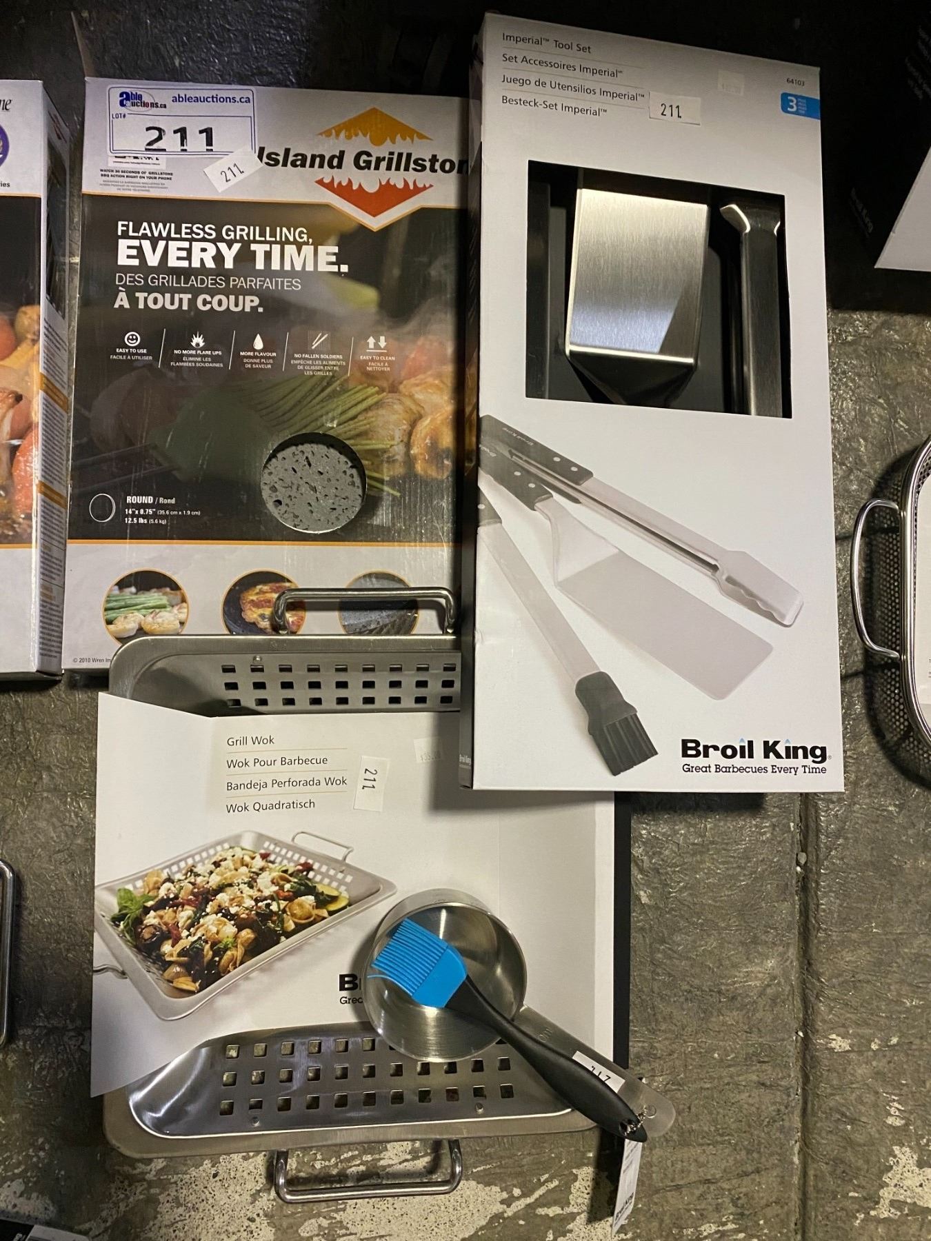 GROUP LOT NATURAL STONE COOKING STONE, GRILL WOK, IMPERIAL TOOL SET AND BASTER BRUSH SET