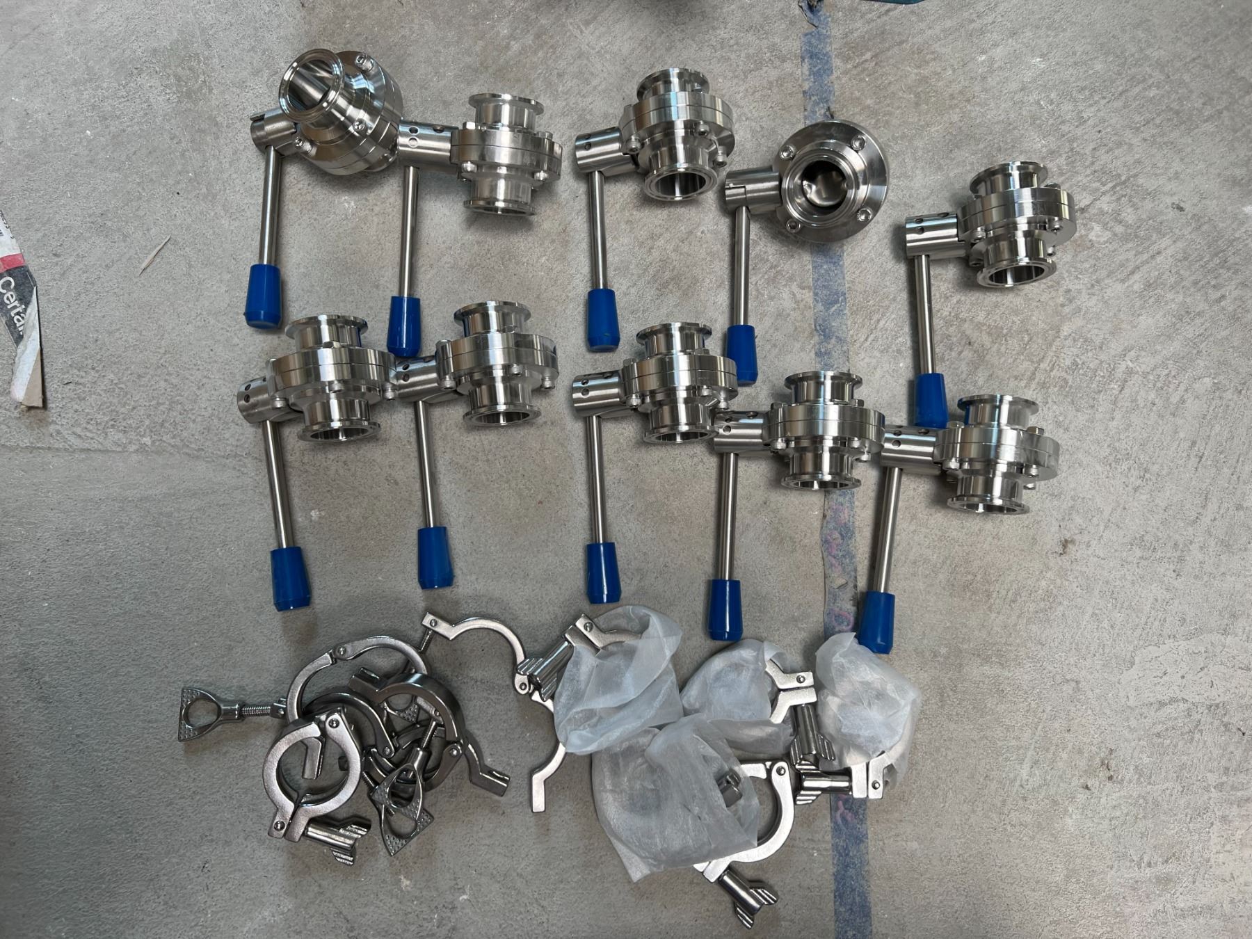 GROUP LOT OF 10 1.25" STAINLESS VALVES WITH 10 CLAMPS