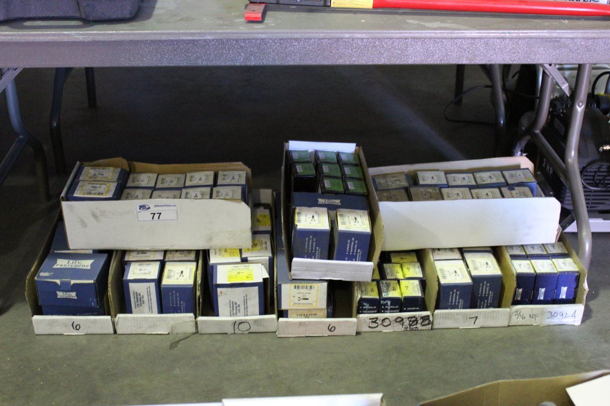 GROUP LOT OF 10 BOXES OF ASSORTED LILY FASTNERS - HEX CAP SCREWS & BOLTS