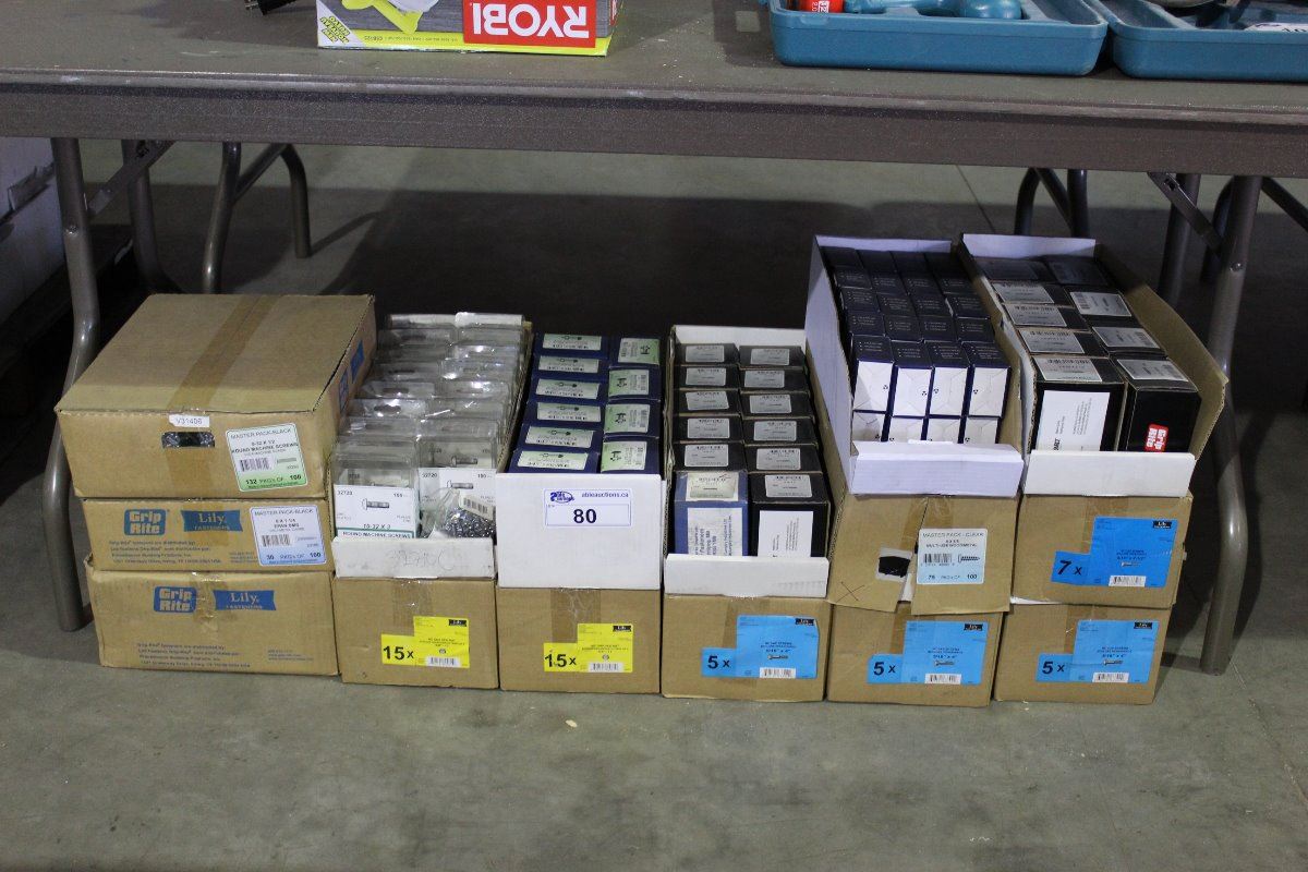 GROUP LOT OF 13 BOXES OF ASSORTED NEW FASTENERS ROUND STOVE BOLTS/ ROUND MACHINE SCREWS ECT.