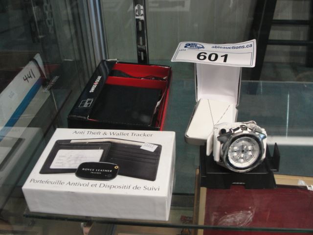 GROUP LOT OF 2 MENS WALLETS, CASIO WRIST WATCH AND NECKLACE WITH PENDANT