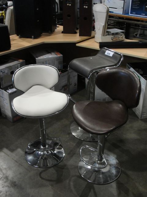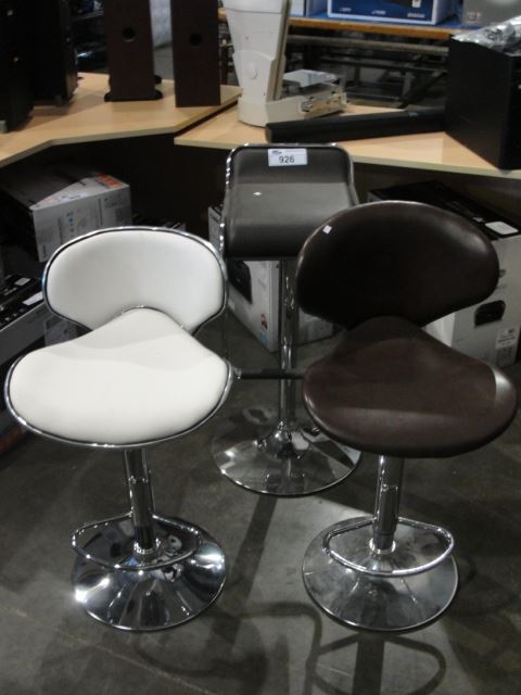 GROUP LOT OF 3 CHROME AND MULTI COLOURED GAS LIFT BAR STOOLS