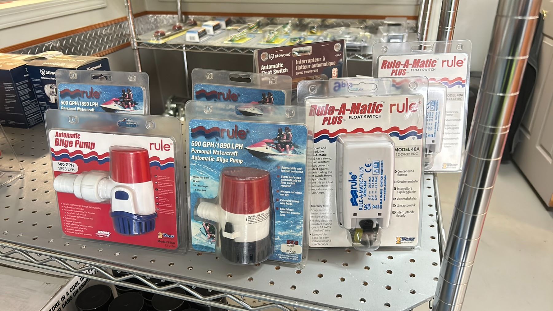 GROUP LOT OF 4 AUTOMATIC BILGE PUMPS, 3 FLOAT SWITCHES