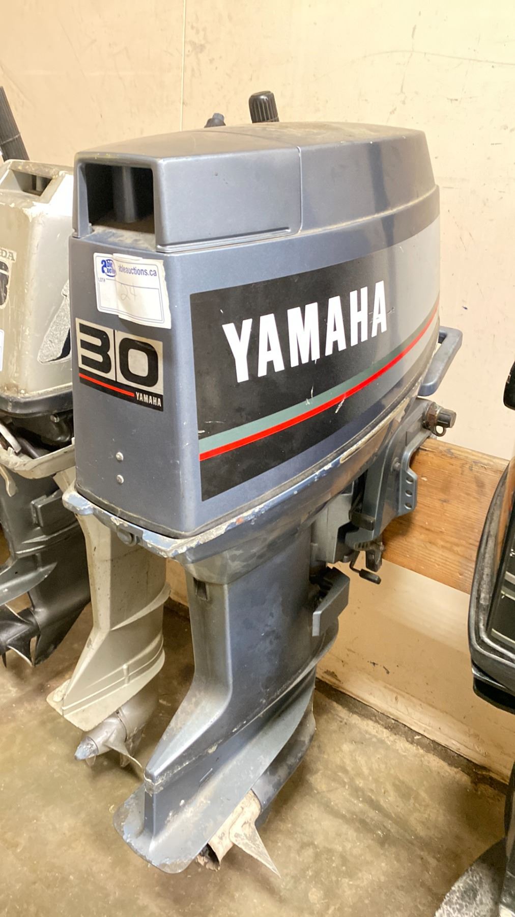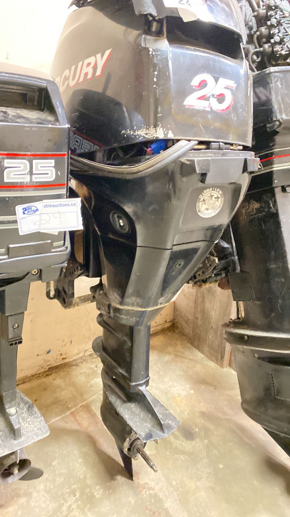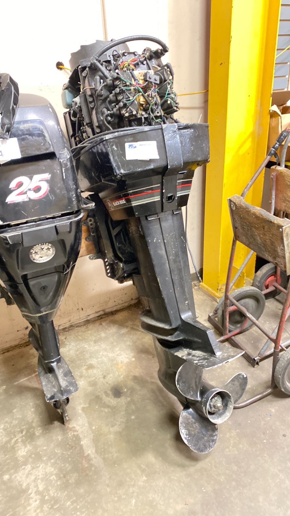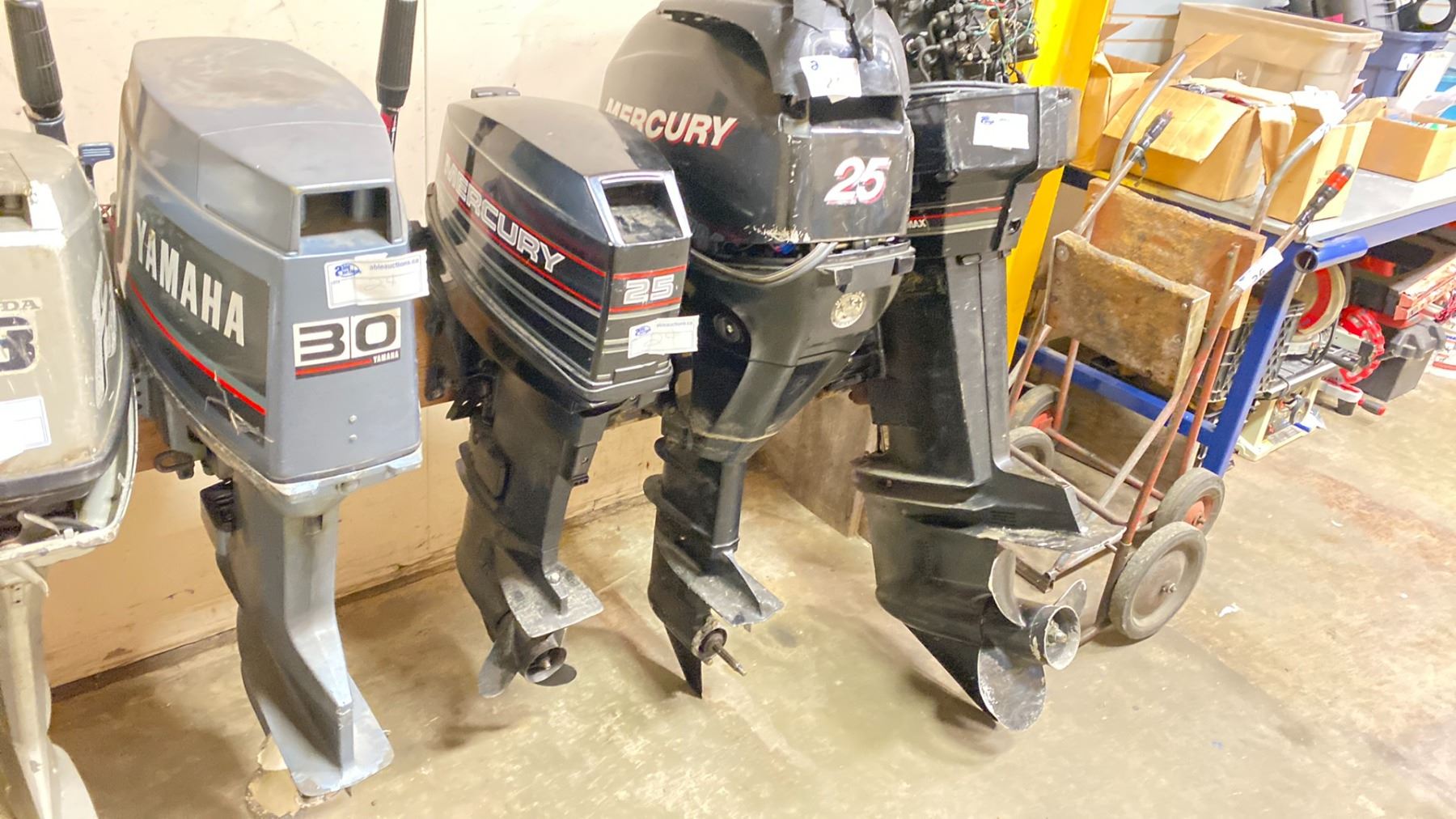 GROUP LOT OF 4 OUTBOARDS FOR PARTS. YAMAHA 30 HP (REPAIRABLE), MERCURY 25HP X 2, BLACK MAX 6 CYL