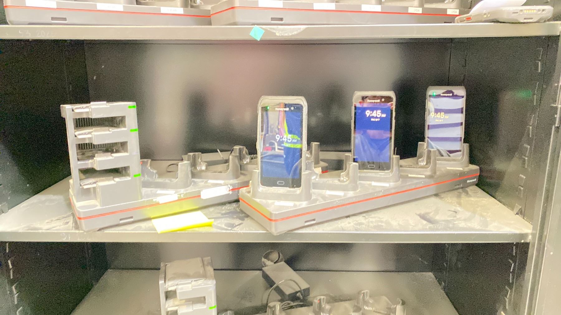 GROUP LOT OF 9 HANDHELD SCANNERS CT-45 WITH CHARGING DOCKS. RETAIL VALUE OVER $20,000 PHOTO SHOWS PART OF THIS LOT-THE REMAINDER WERE IN USE AT TIME OF CATALOGING